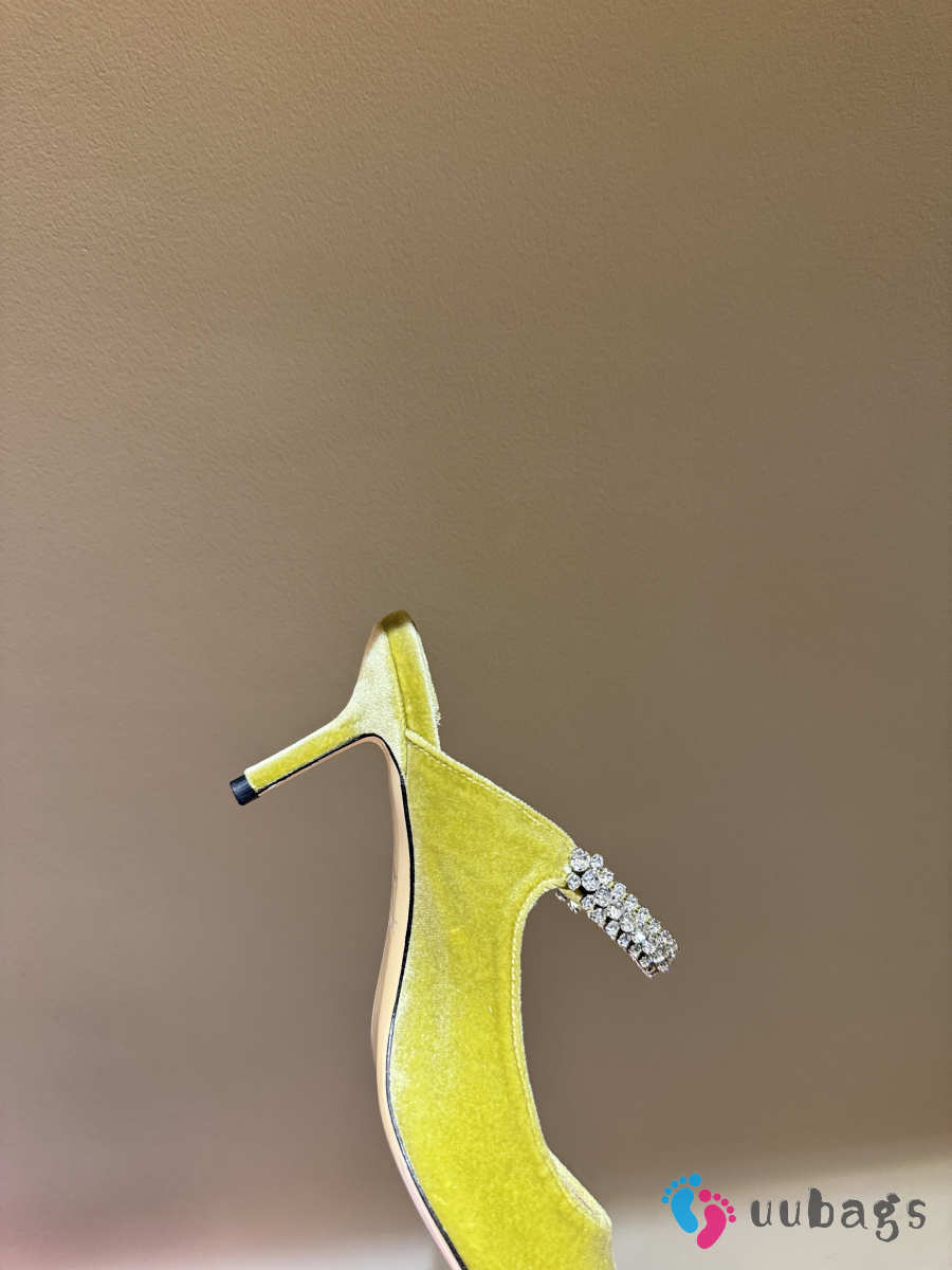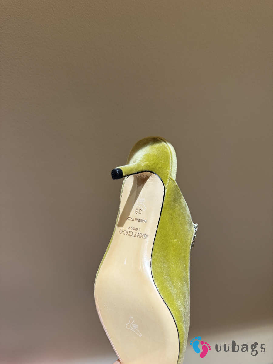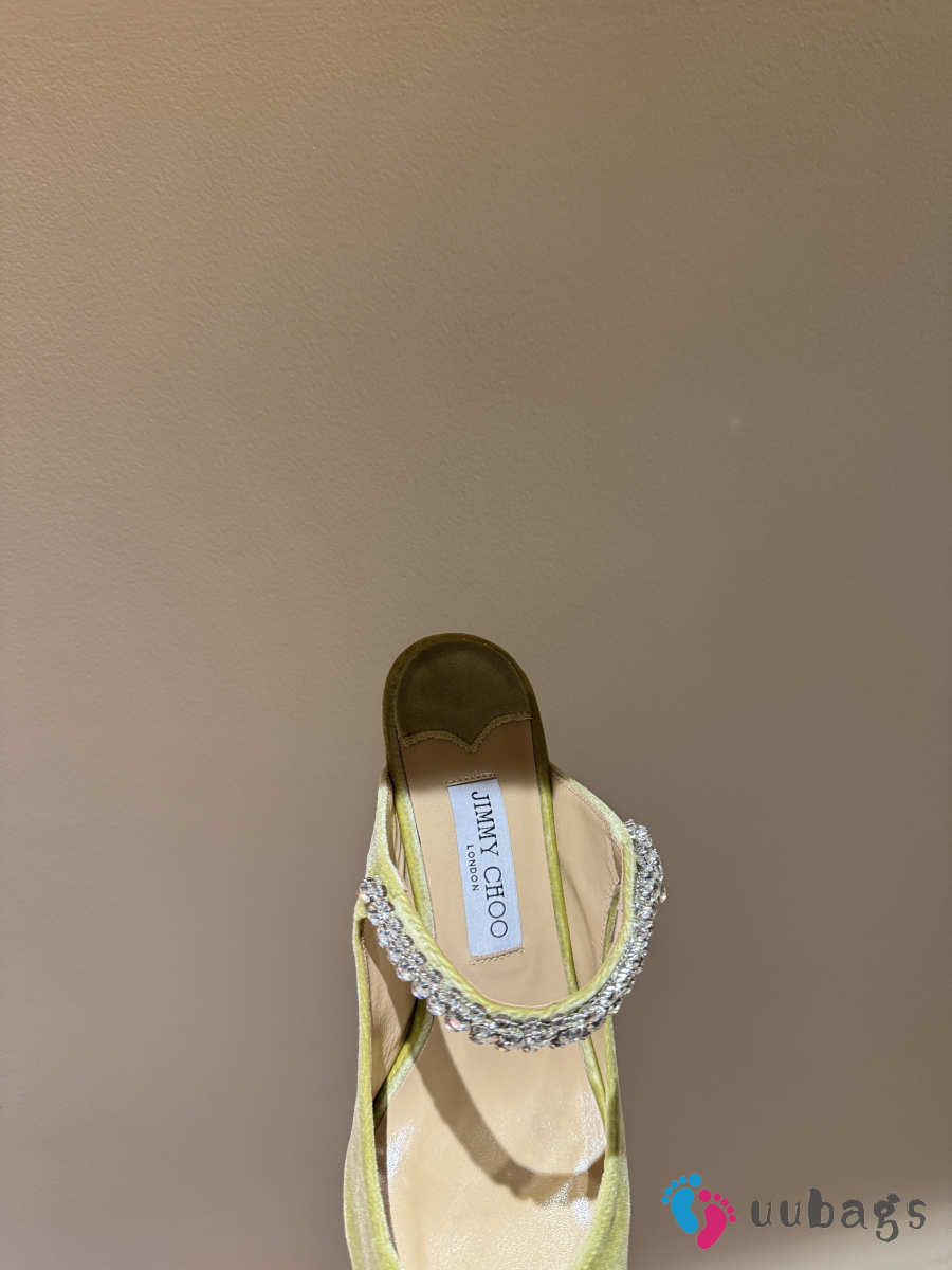 Uubags Jimmy Choo Bing 100 Lime Green Velvet Mules with Crystal Embellishment 6.5cm