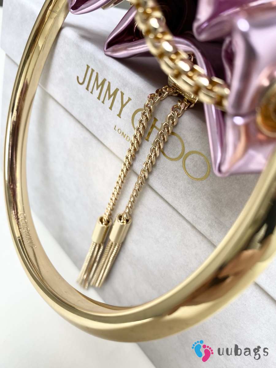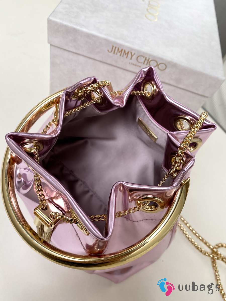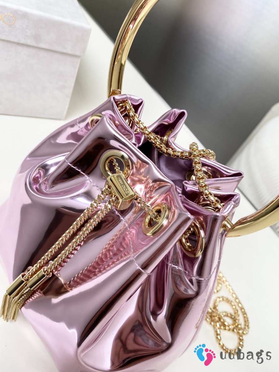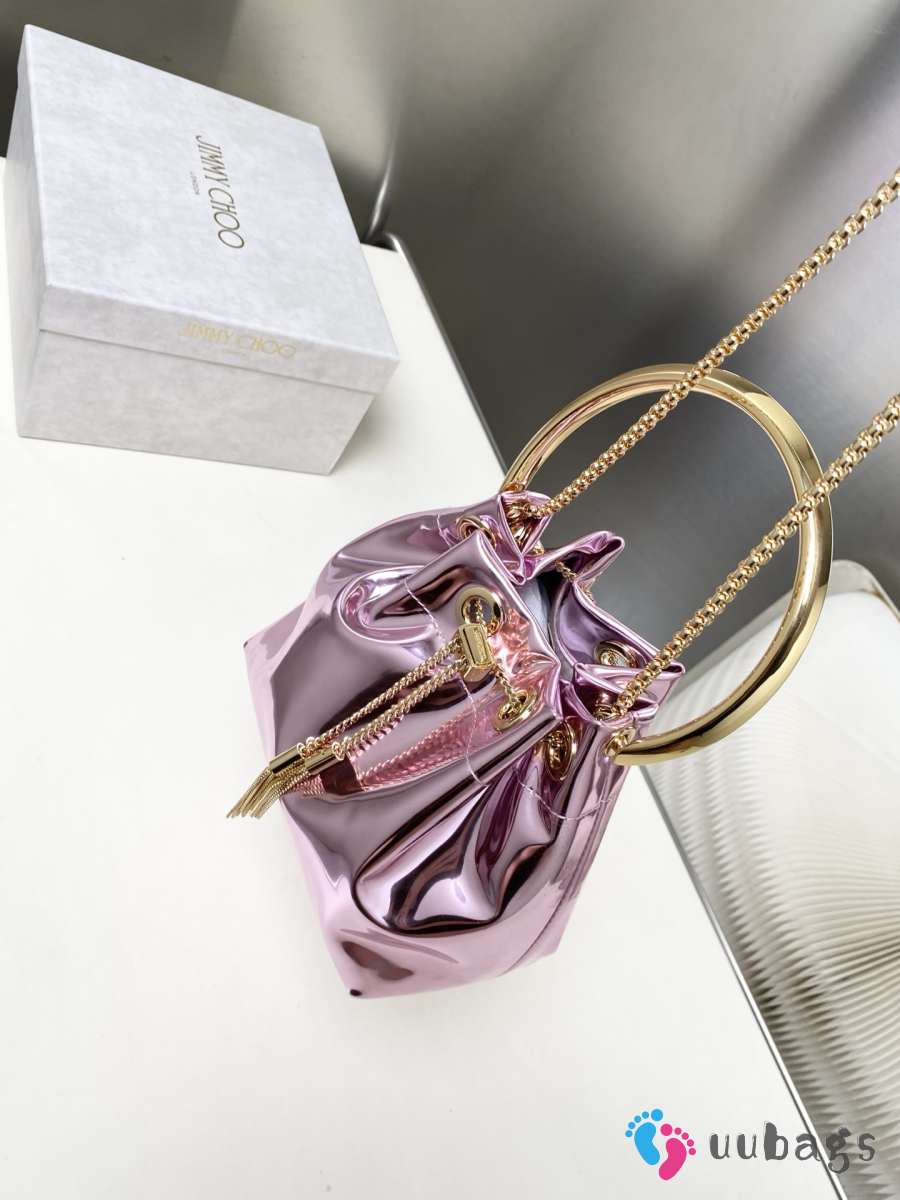 Uubags Jimmy Choo Bon Bon Pink Mirror Fabric Mini Bag with Metal Handle 14x15x9.5cm