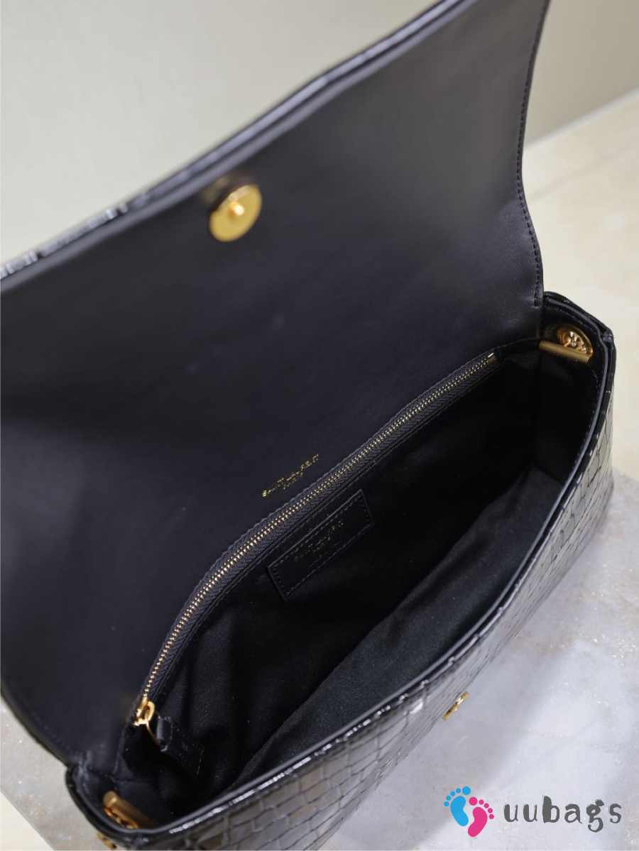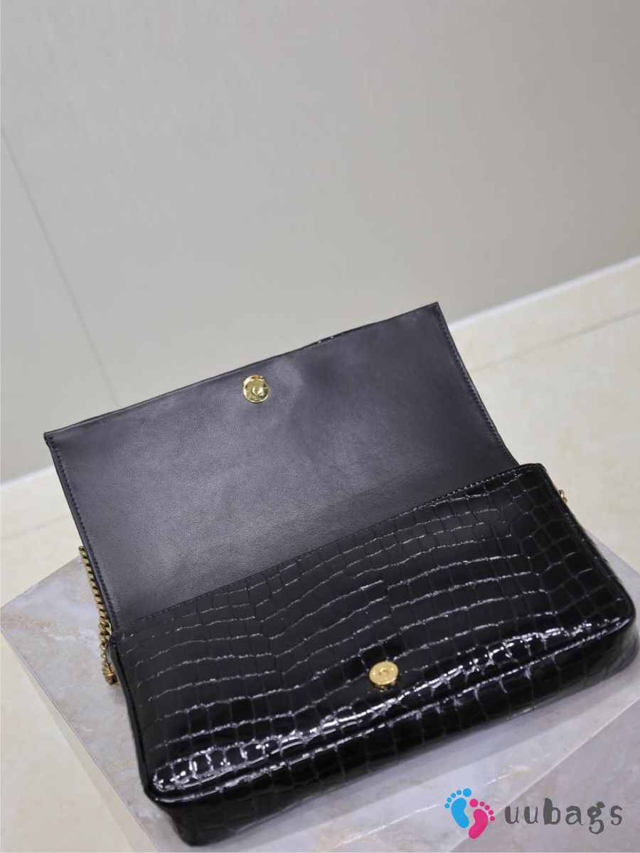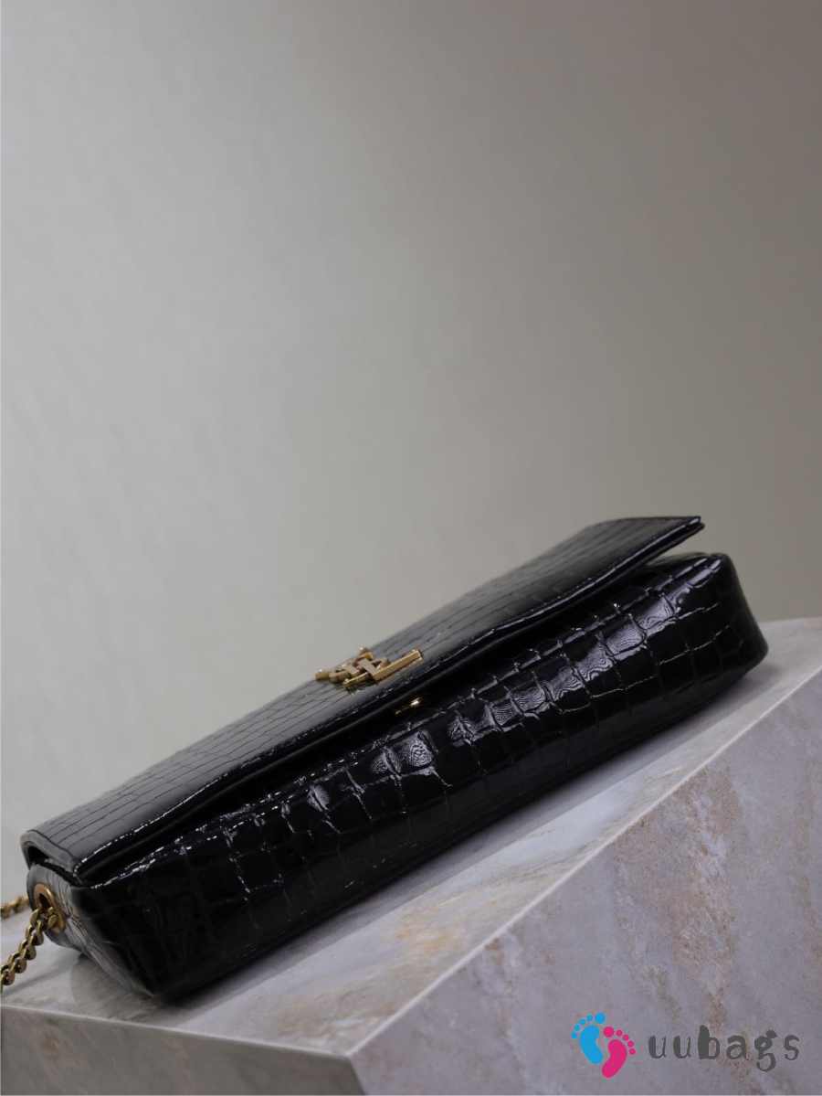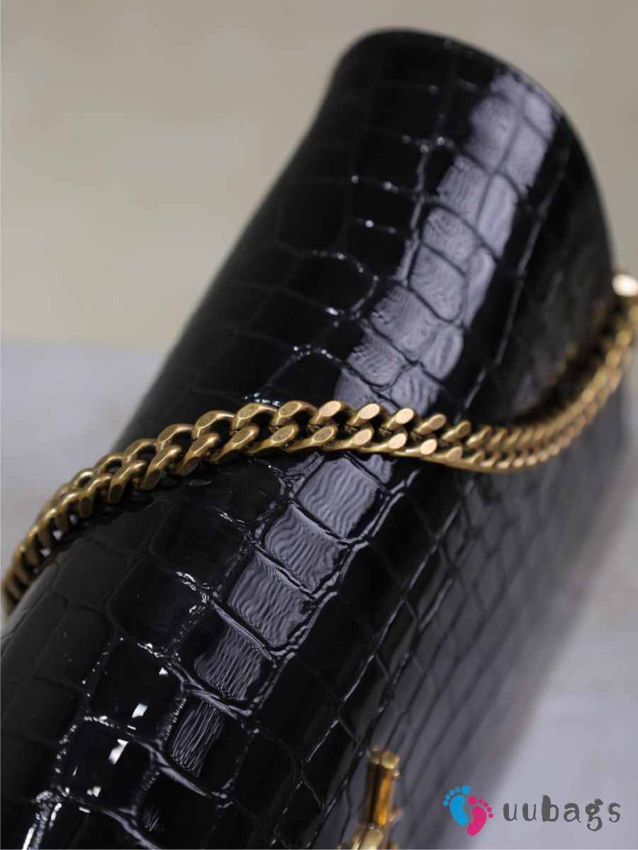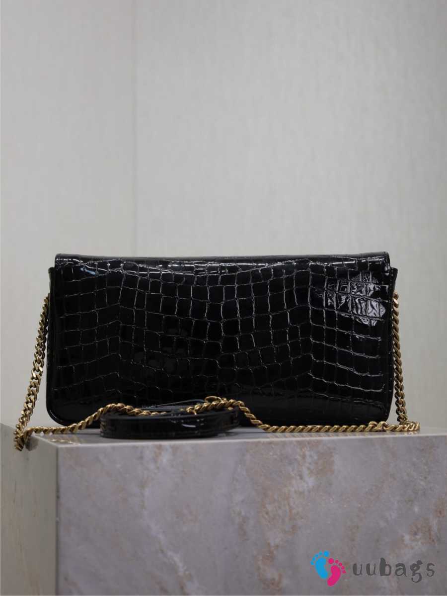 Uubags Kate Chain Wallet in Black Crocodile-Embossed Patent Leather 26x13.5x4.5cm