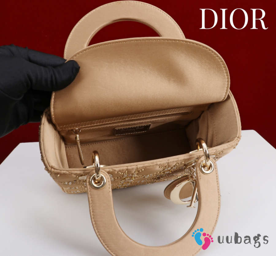 Uubags Lady Dior Small Bag In Beige Beaded Cannage Embroidery Bag 20x16.5x8cm