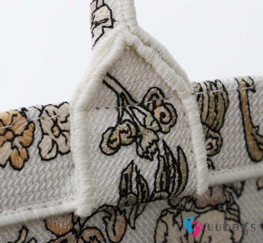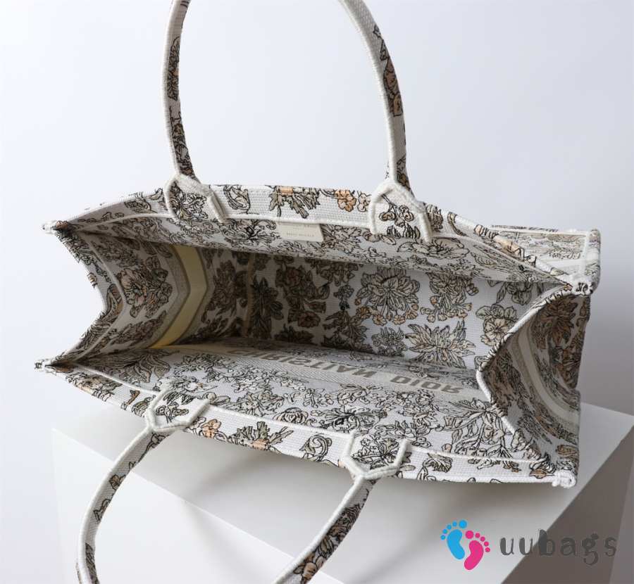 Uubags Large Dior Book Tote Bag in Beige Multicolor Toile de Jouy Flower Embroidery 41.5x34.5x16cm