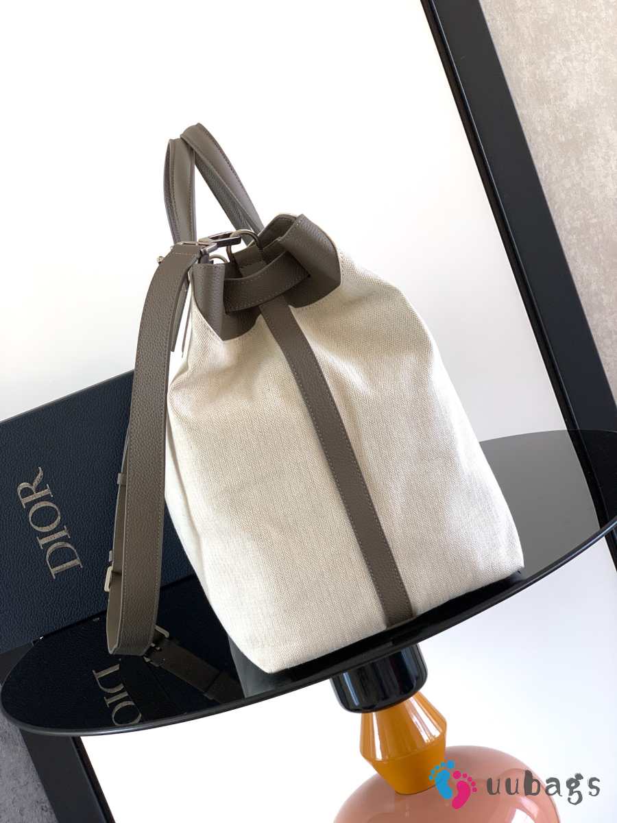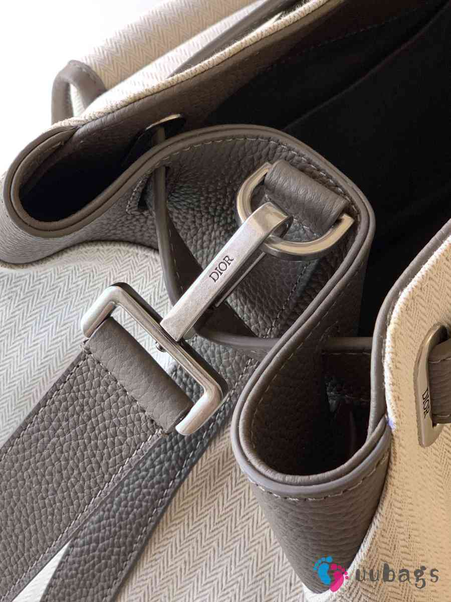 Uubags Large Dior Normandie Tote Bag Beige Herringbone Cotton Canvas and Gray Dior Icons Calfskin