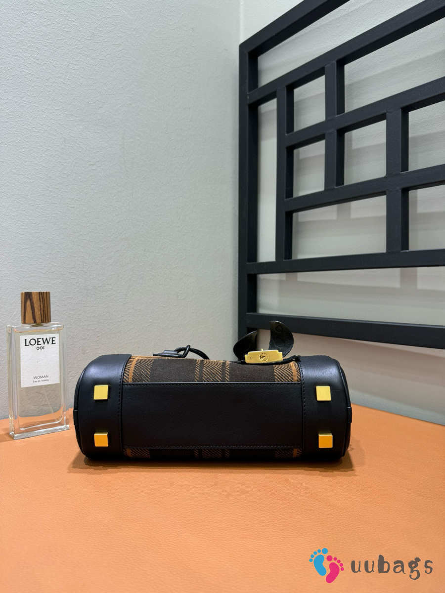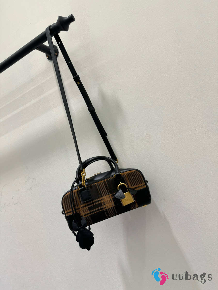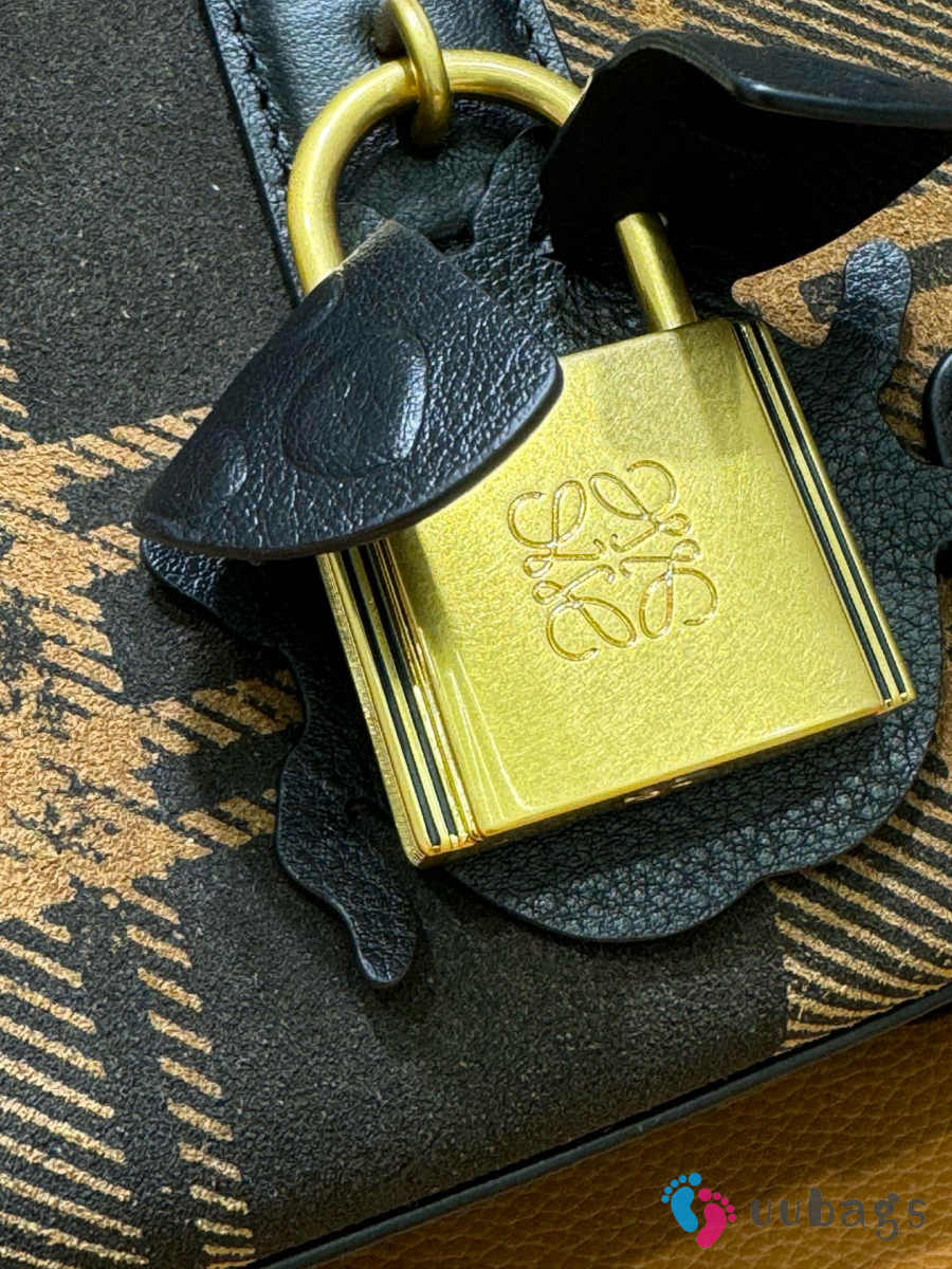 Uubags Loewe Amazona 23 Cropped Bag In Tartan Suede and Napa Calfskin Tan/Black 11x23x10cm