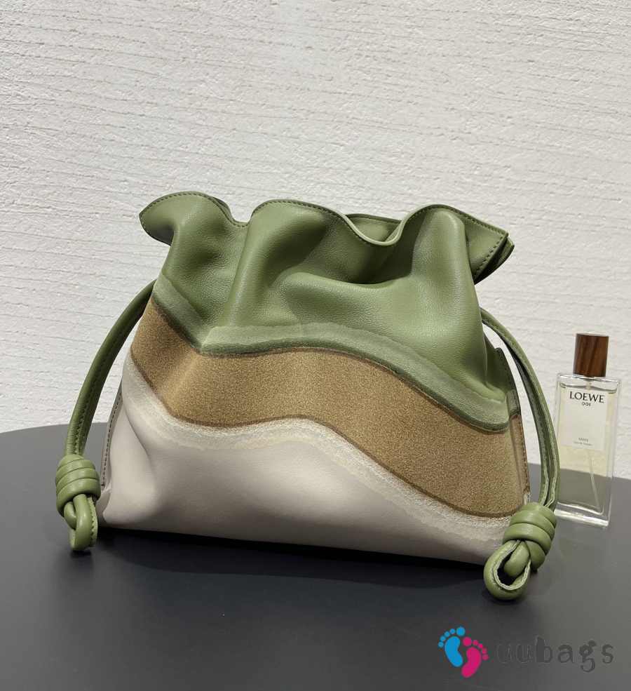 Uubags Loewe Flamenco Clutch Bag in Caramel / Bright Green 24x18x9cm