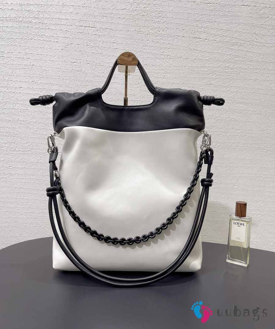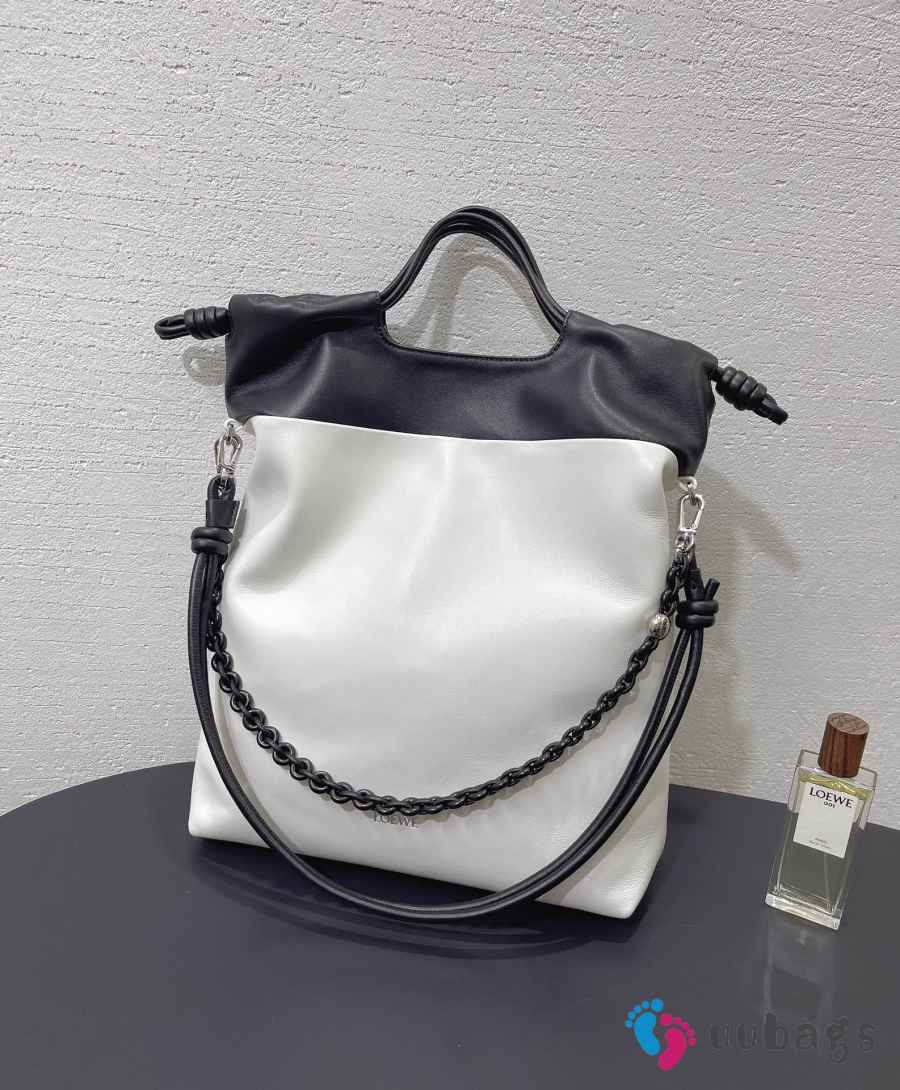 Uubags Loewe Flamenco purse tote in mellow nappa lambskin light ghost/black 38x29x9cm
