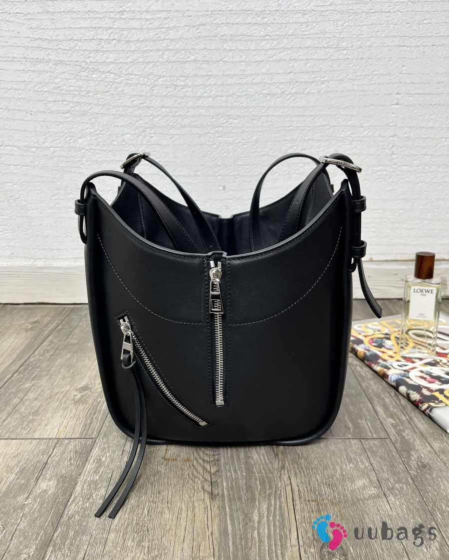 Uubags Loewe Hammock flip bag in black classic calfskin 15x22.5x21cm