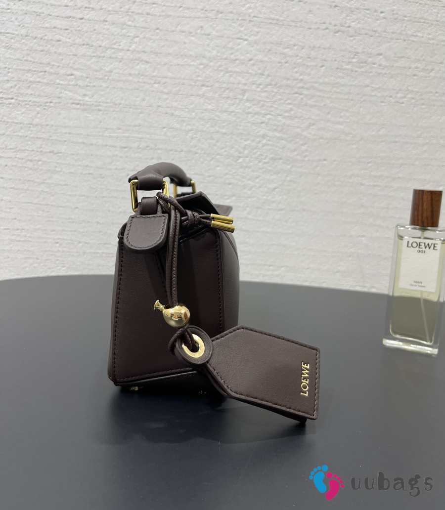 Uubags Loewe mini Featherlight Puzzle bag in dark chestnut nappa lambskin 18x12.5x7.5cm