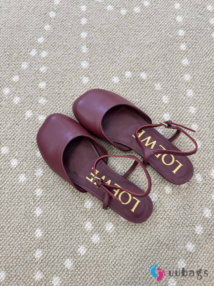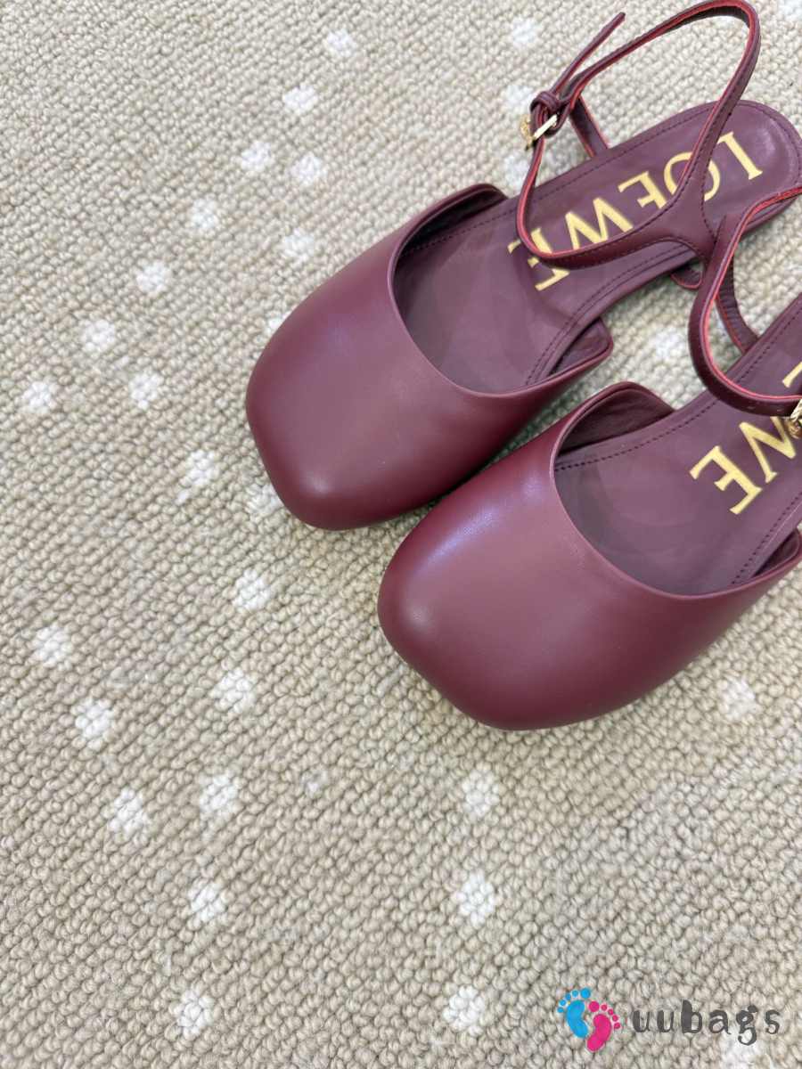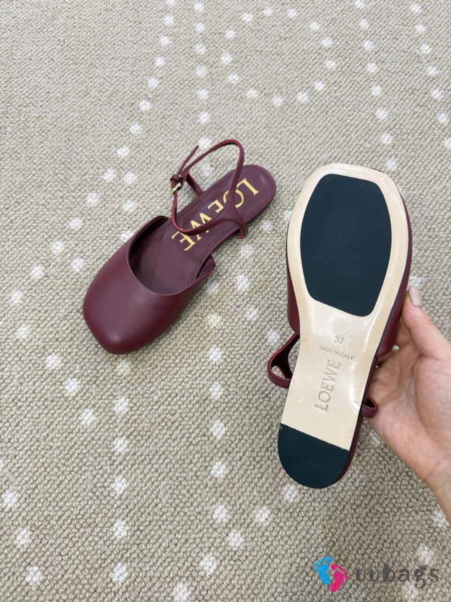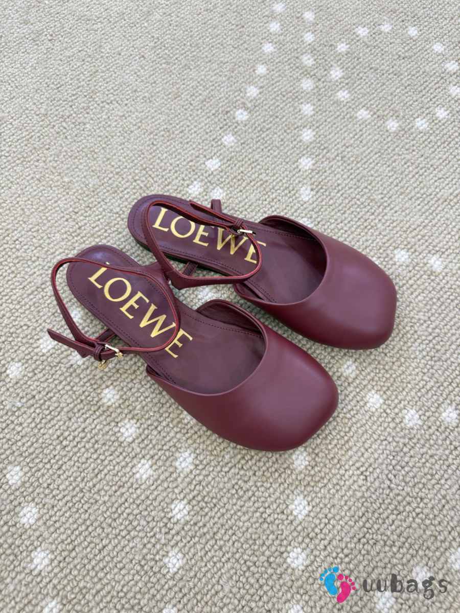 Uubags Loewe Toy Ballerinas with Ankle Strap in Burgundy Lambskin