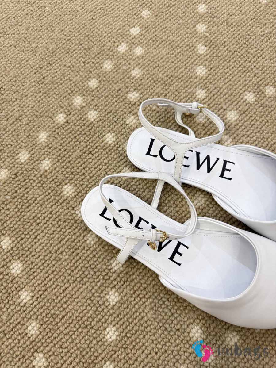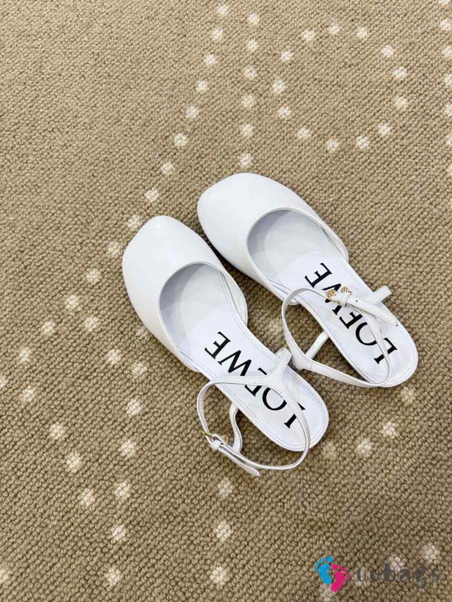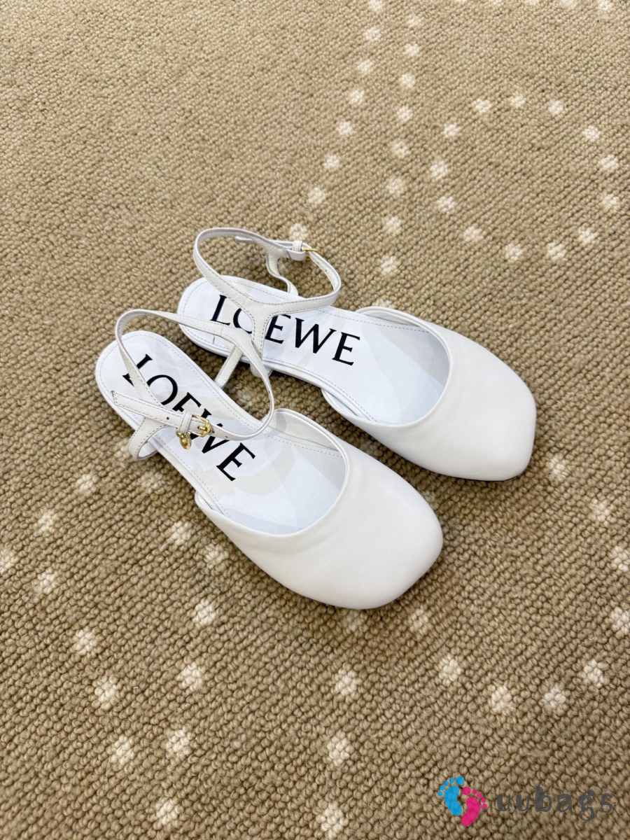 Uubags Loewe Toy Ballerinas with Ankle Strap in White Lambskin
