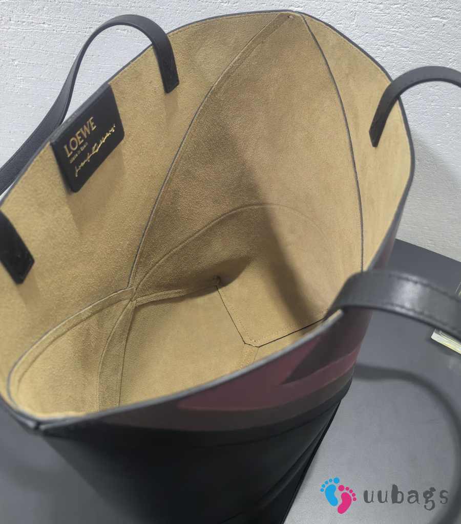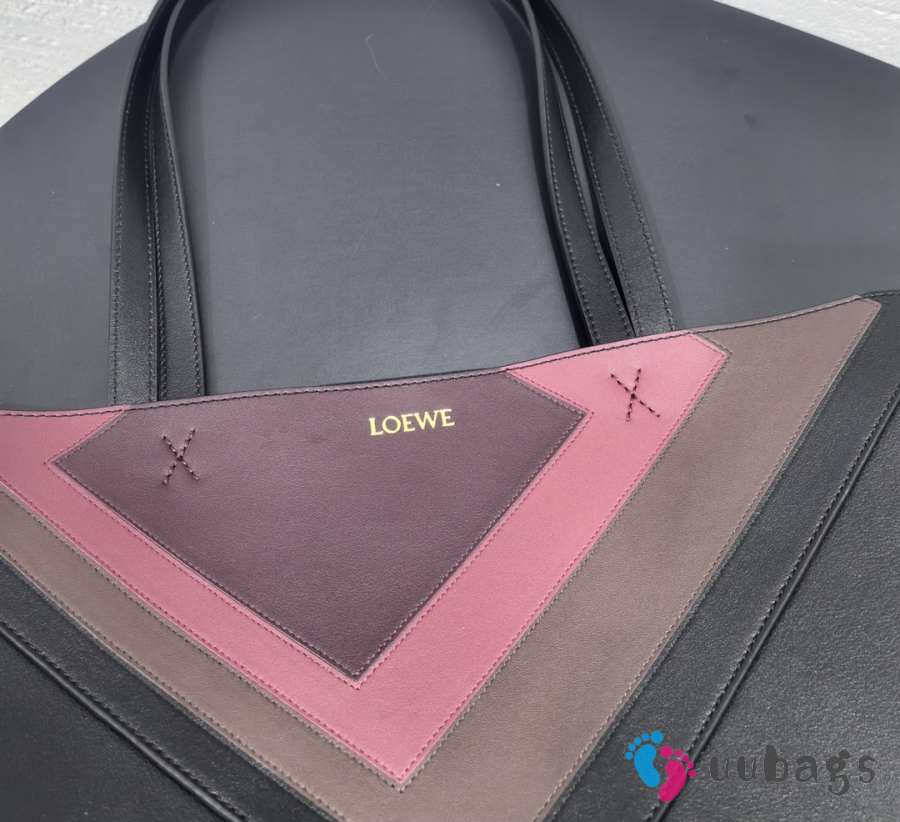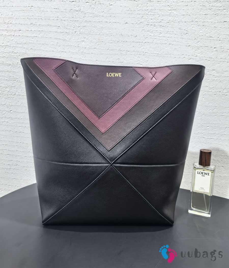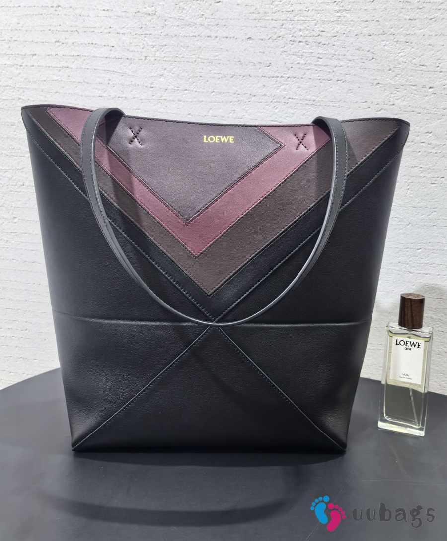 Uubags Loewe x Albers Puzzlefold Medium Tote in Napa Calfskin In Black/Burgundy 31.5x25.5x14.5cm