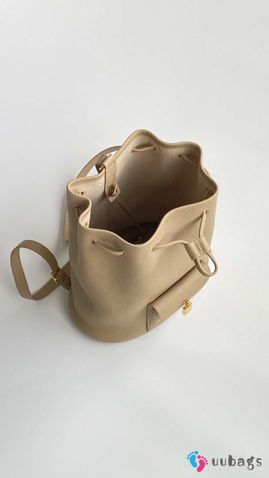 Uubags Loro Piana Extra Drawstring backpack L27 Calfskin In Beige/Sun Gold 25x27x14cm