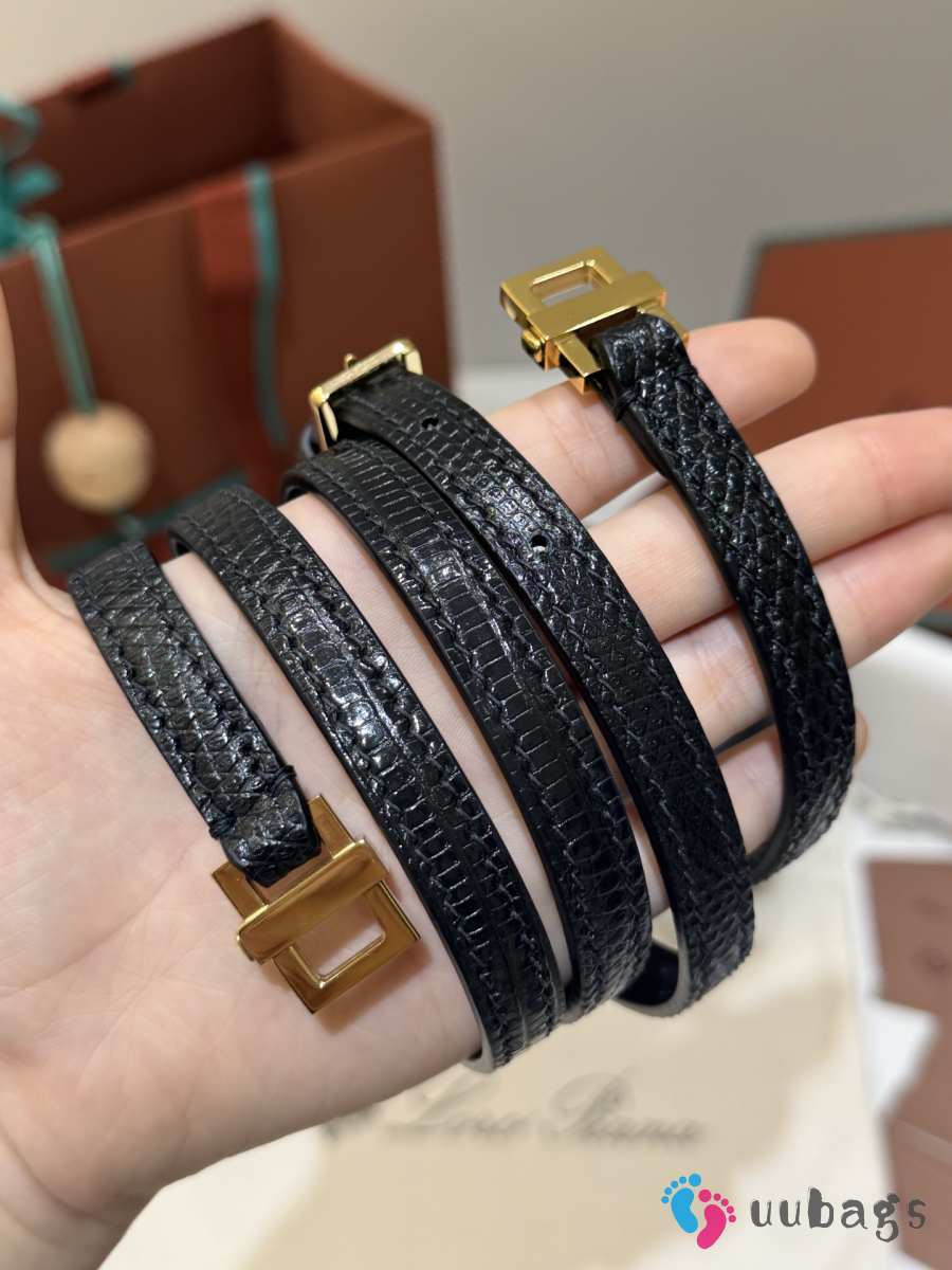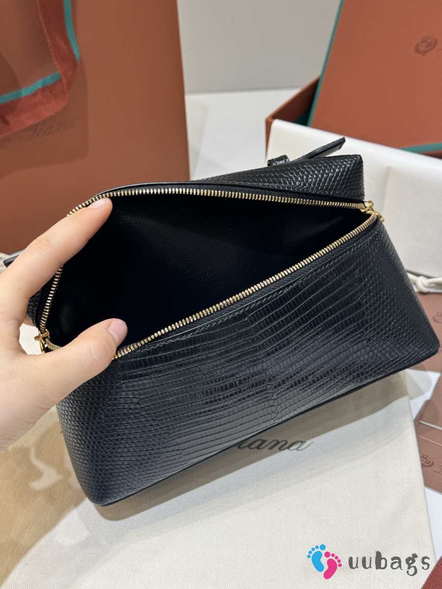 Uubags Loro Piana Extra Pocket L19 Monitor Lizard Bag Black/Sun Gold 11x19x6.5cm
