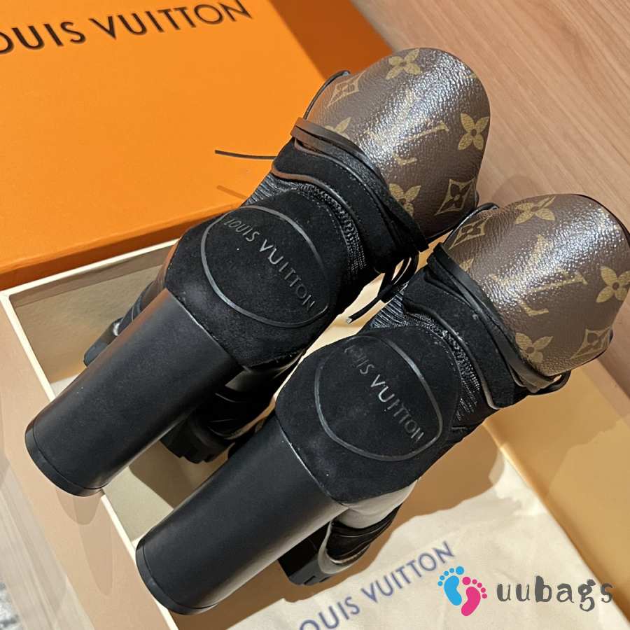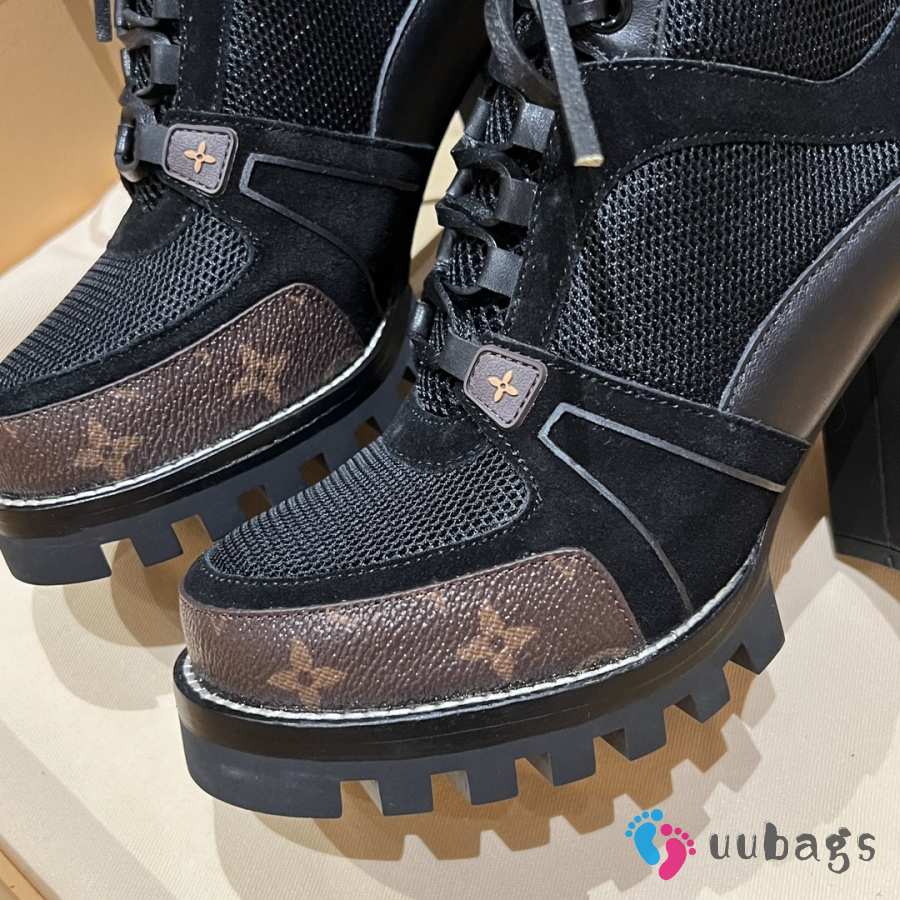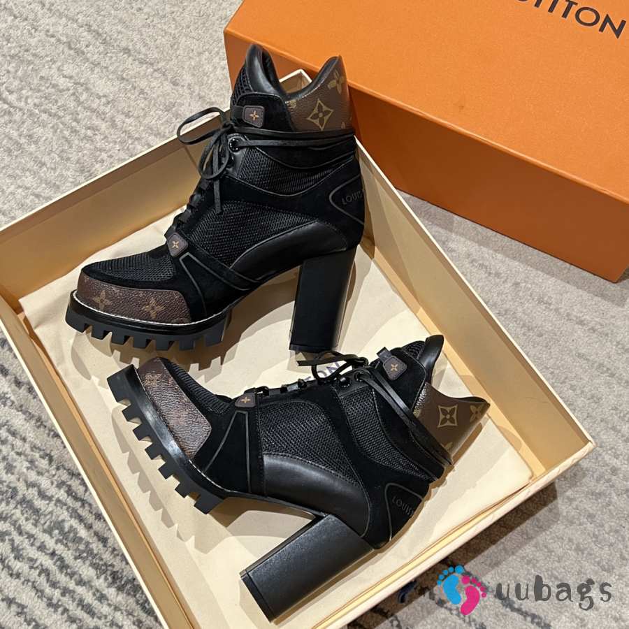 Uubags Louis Vuitton 1A4NS6 Star Trail Ankle Boot Black Monogram Canvas Suede Mesh 9cm