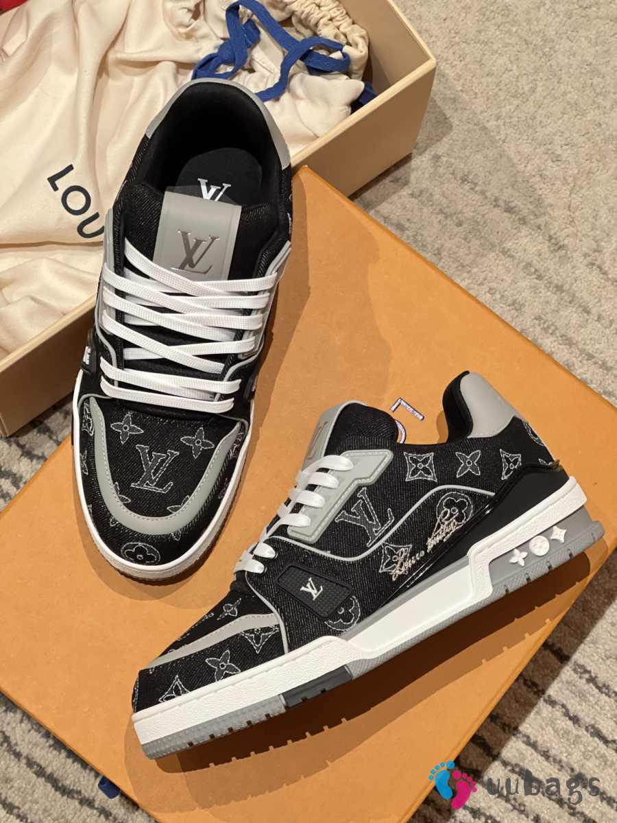 Uubags Louis Vuitton 1AJ338 Trainer Sneaker In Denim Noir
