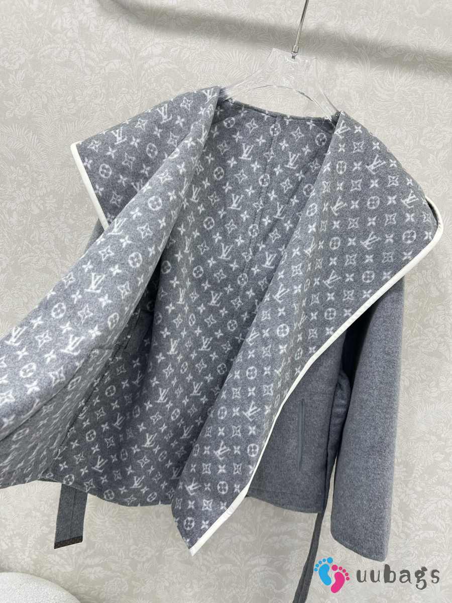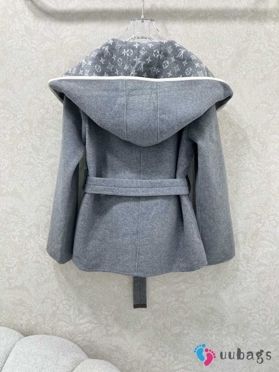 Uubags Louis Vuitton Belted Double Face Hooded Wrap Coat Short In Grey