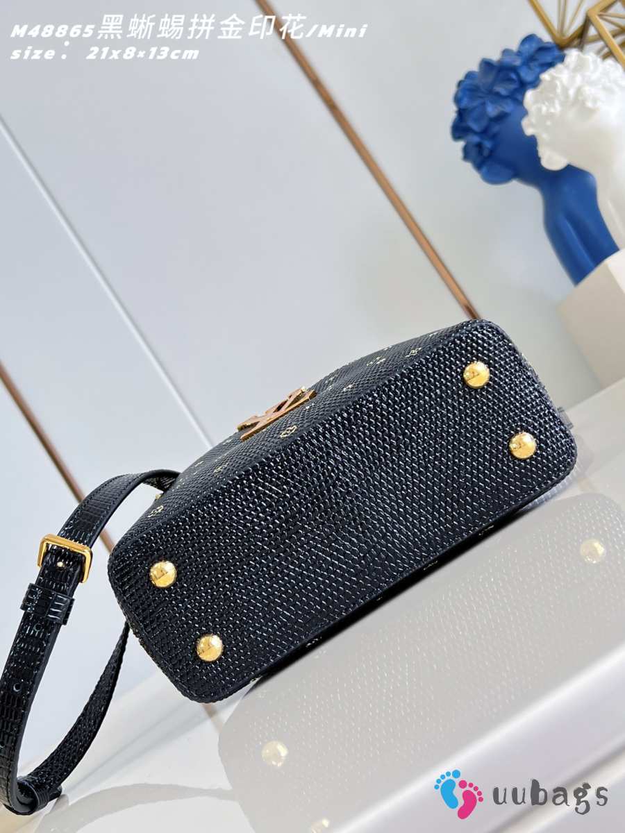 Uubags Louis Vuitton Capucines M48865 Mini Black Crocodile Leather 21x8x13cm