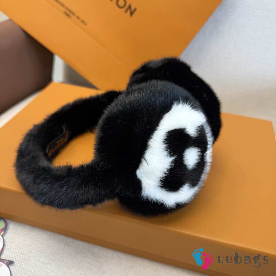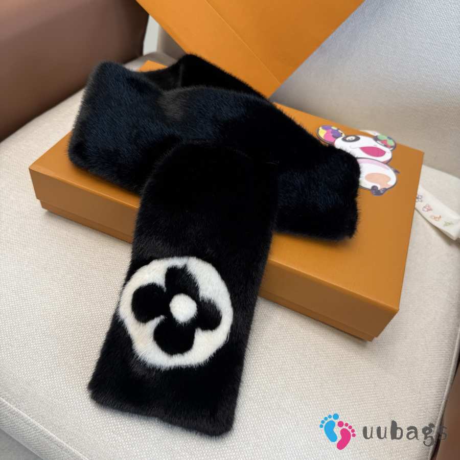Uubags Louis Vuitton Earmuffs & Fur Scarf Set Monogram Flower Black shearling