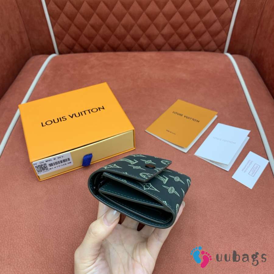 Uubags Louis Vuitton M14793 Victor Wallet Monogram Shadow Leather Dark Green 11.5x9x2.5cm