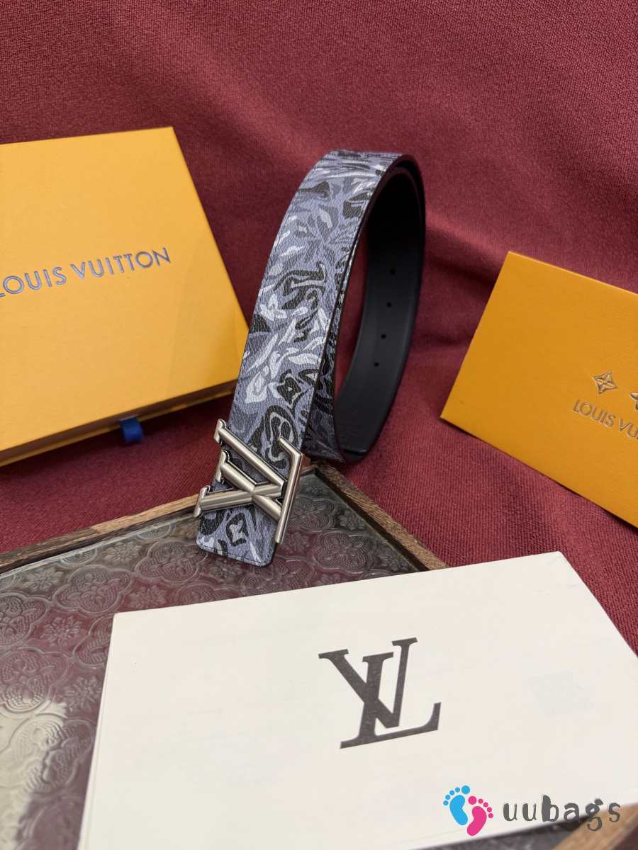 Uubags Louis Vuitton M4383T Flower Camoflage 4cm Reversible Belt In Gray Silver Buckle 4cm