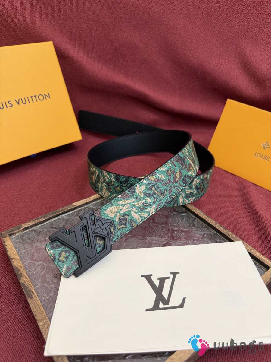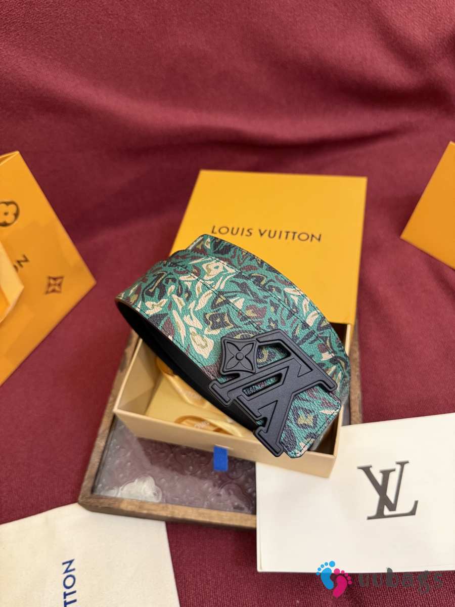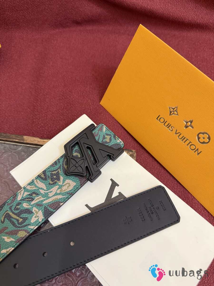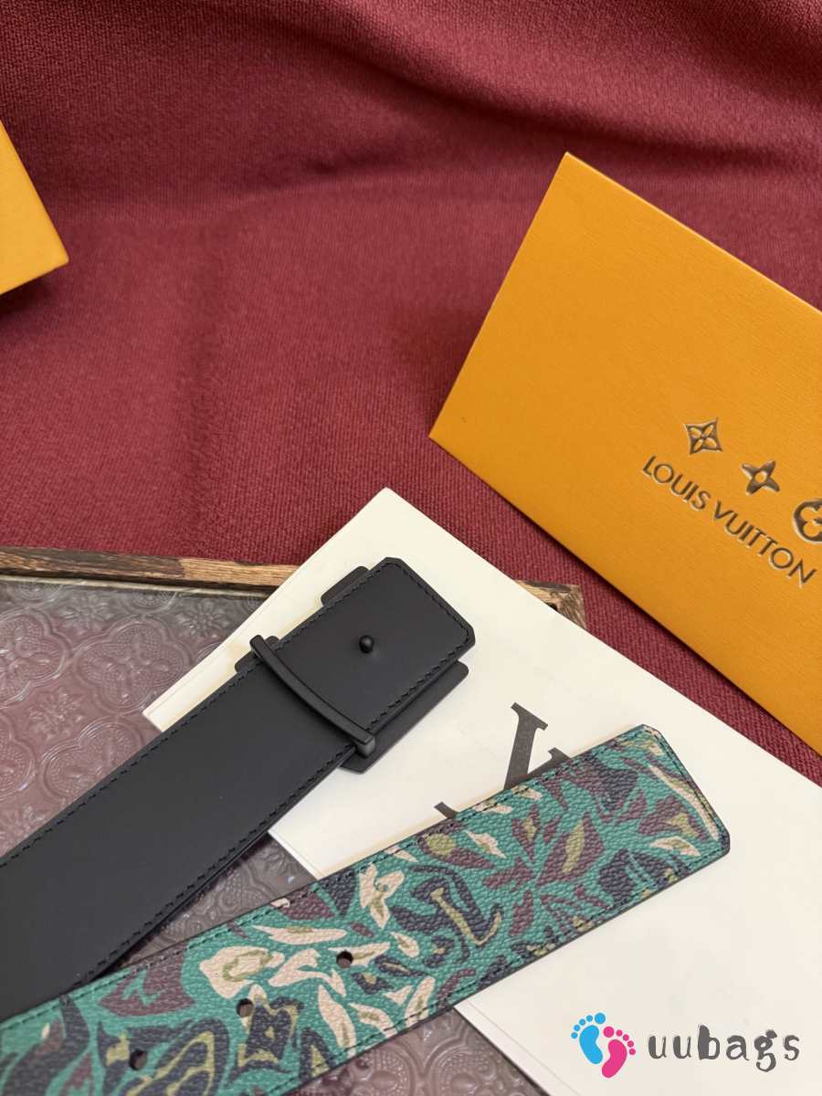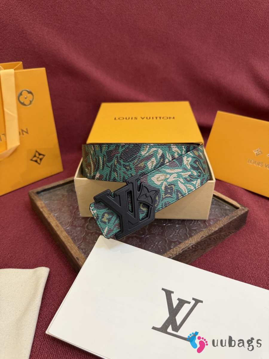 Uubags Louis Vuitton M4383T Flower Camoflage 4cm Reversible Belt In Green Black Buckle 4cm