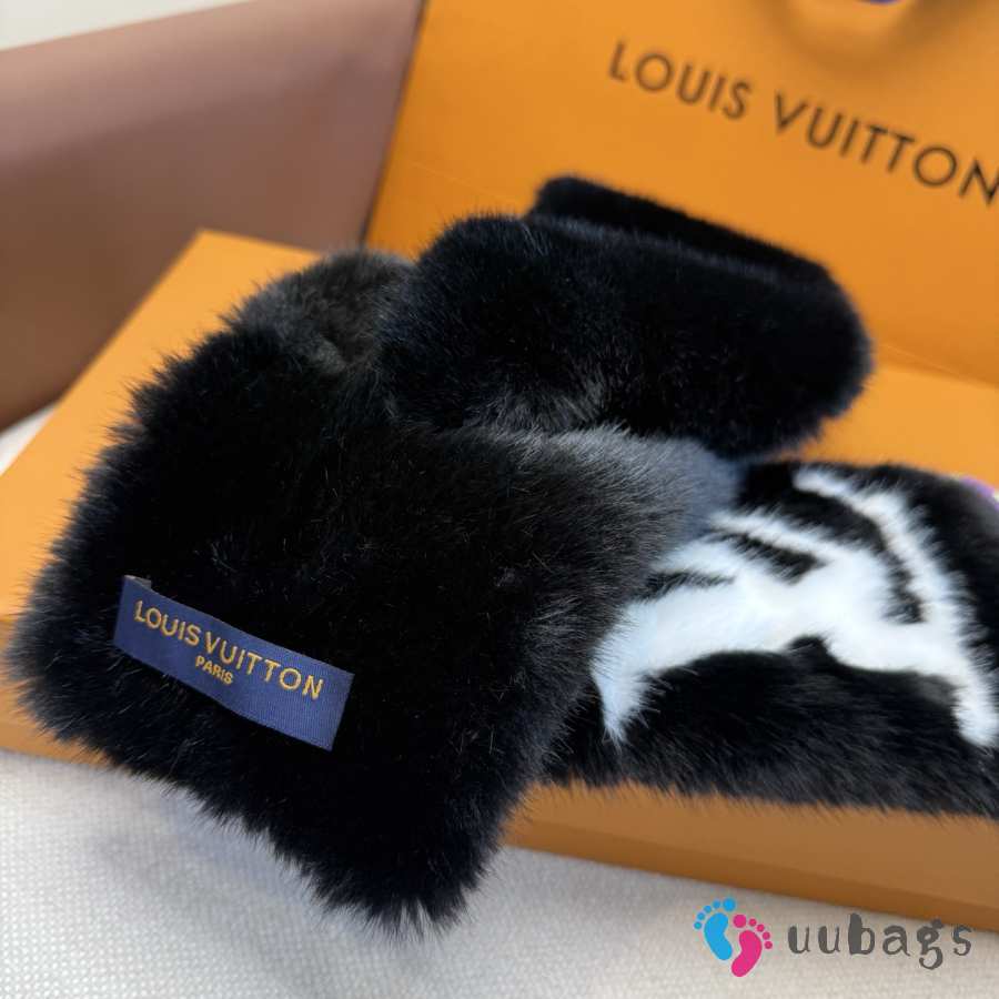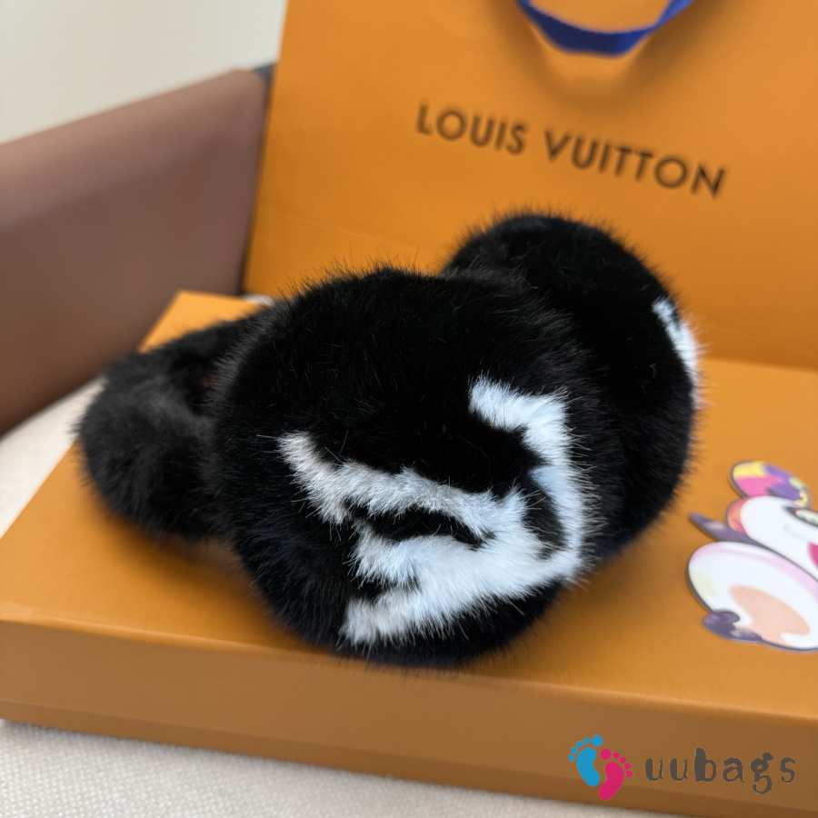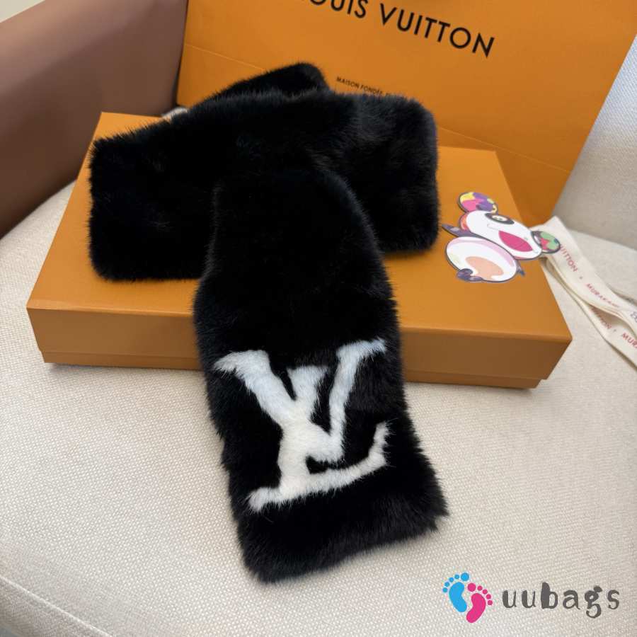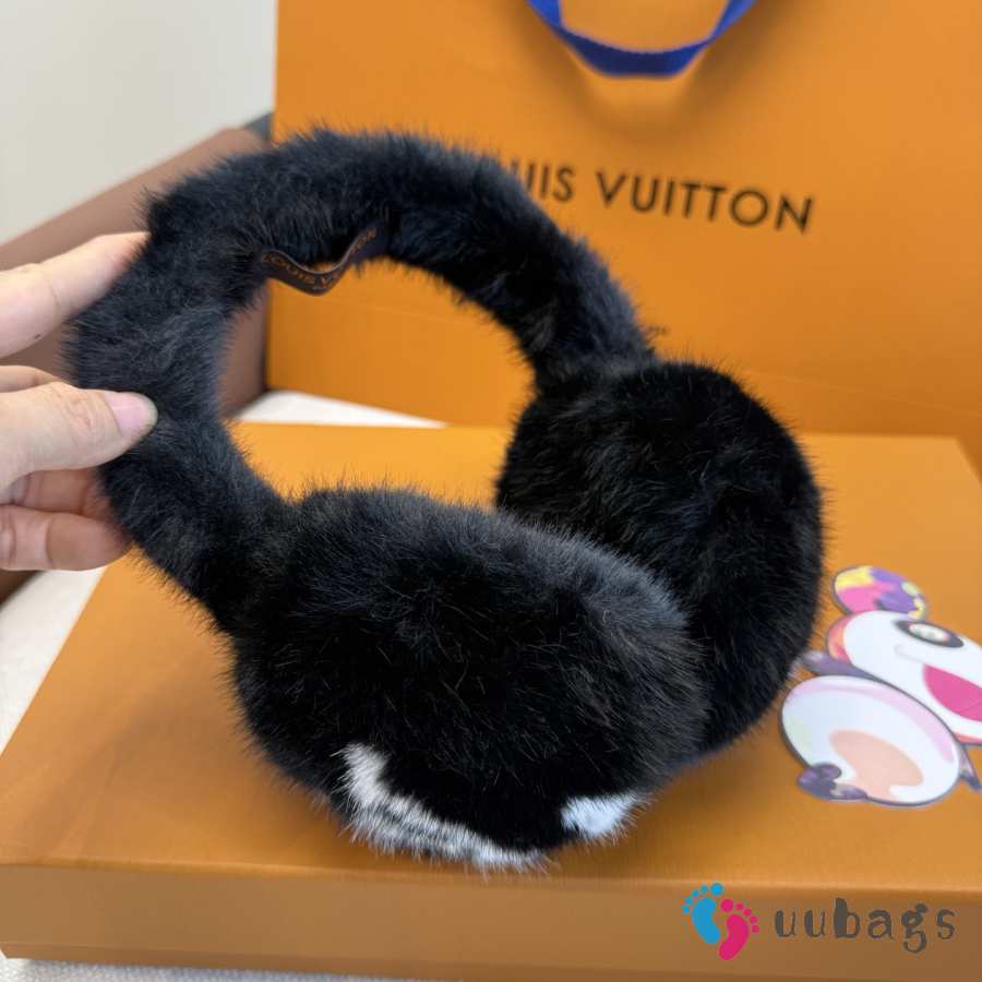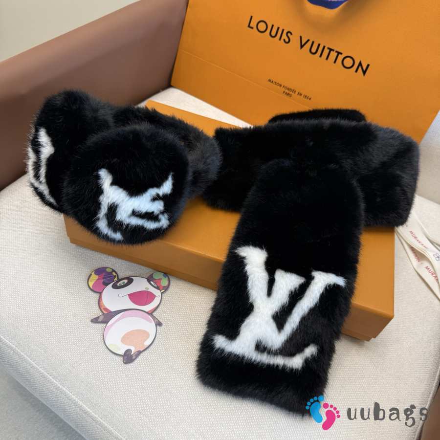 Uubags Louis Vuitton M97421 Cloud Earmuff & Fur Scarf Set In Black