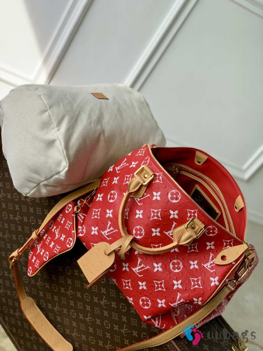 Uubags Louis Vuitton N88228 Speedy P9 40 Monogram Bag Red Ostrich Leather 40x26x23cm