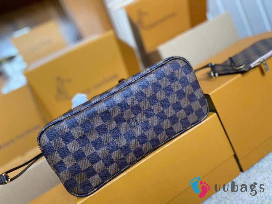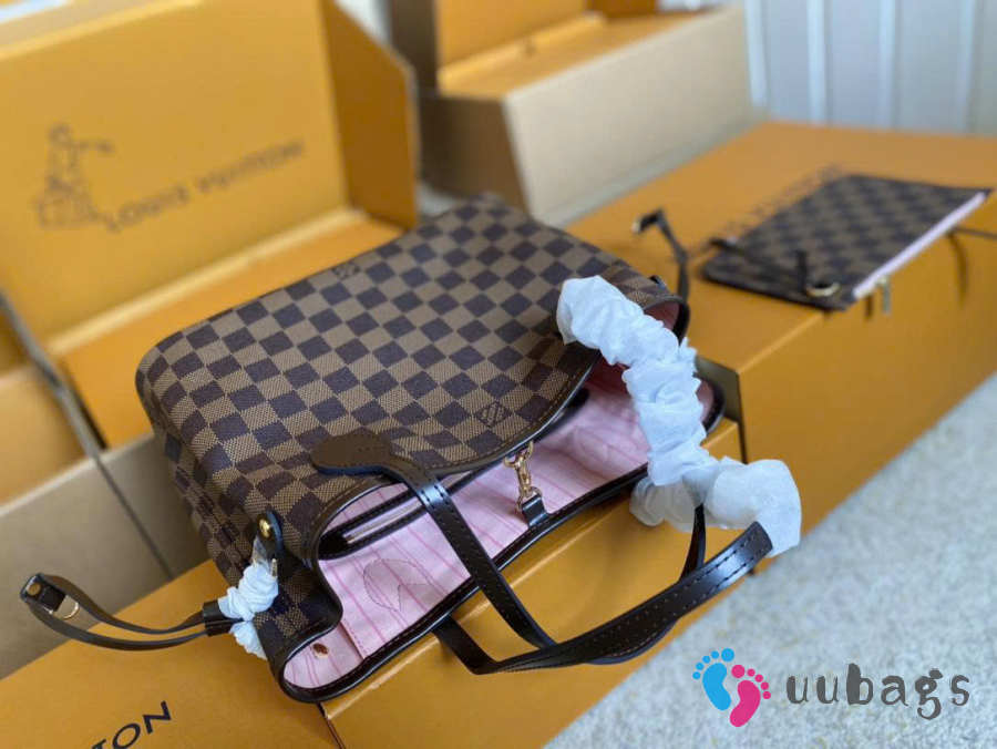 Uubags Louis Vuitton Neverfull PM Damier Ebene Bag Brown Pink Inside 29x21x12cm