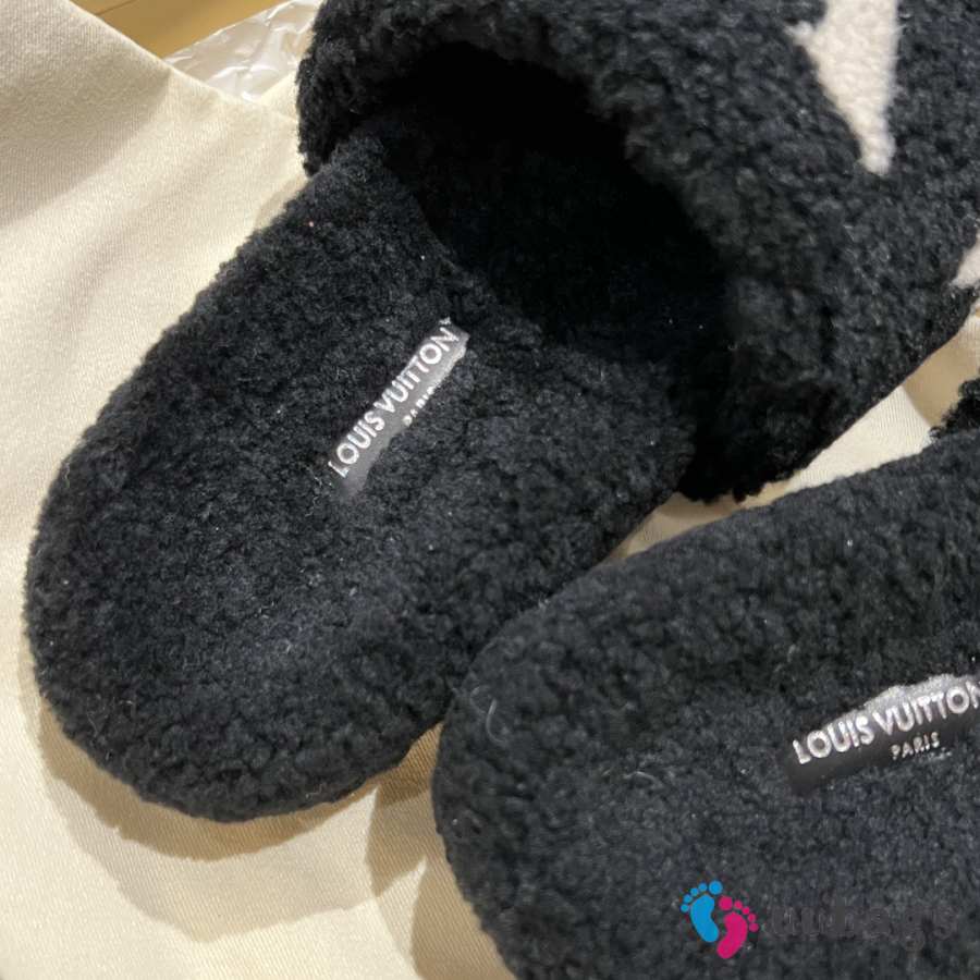 Uubags Louis Vuitton Shearling Printed Slides In Black