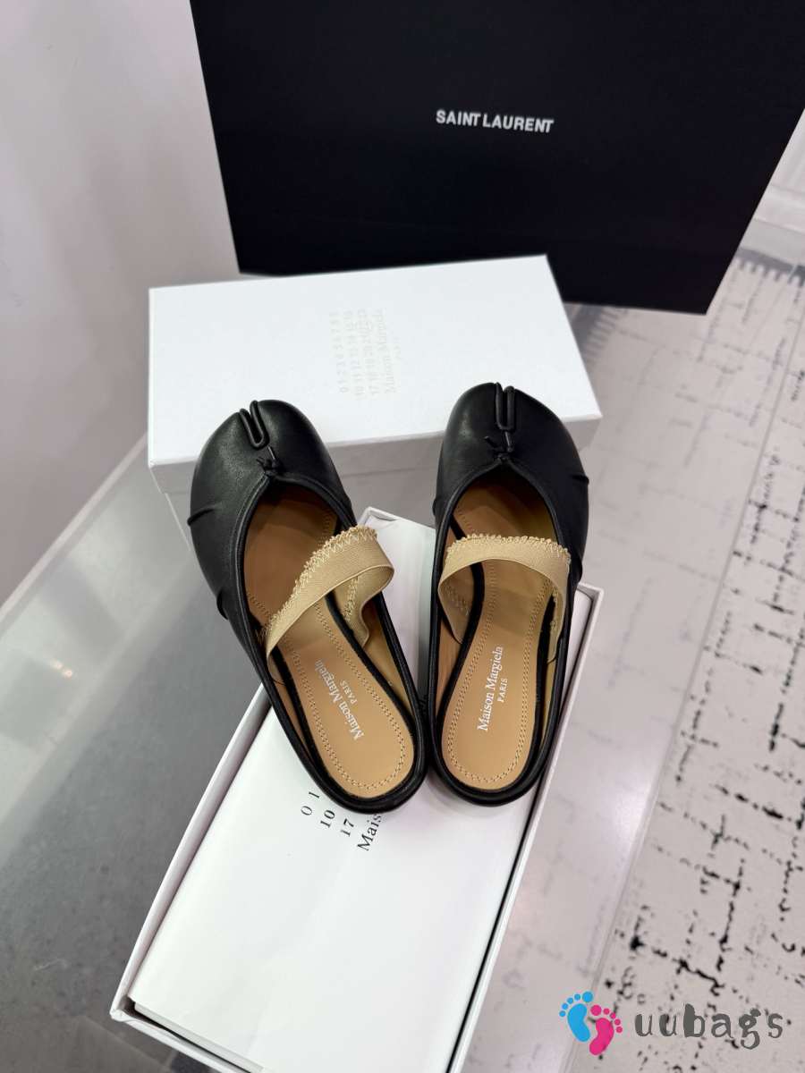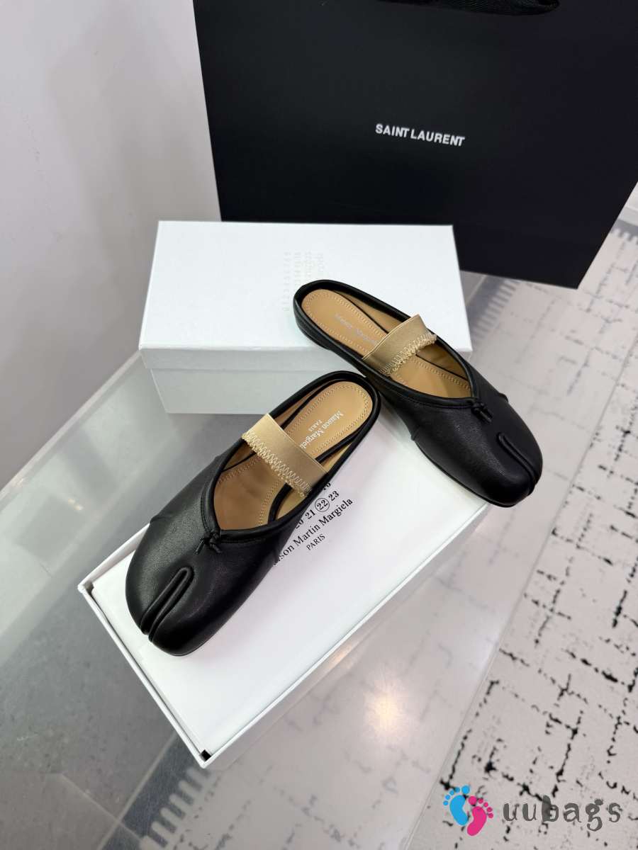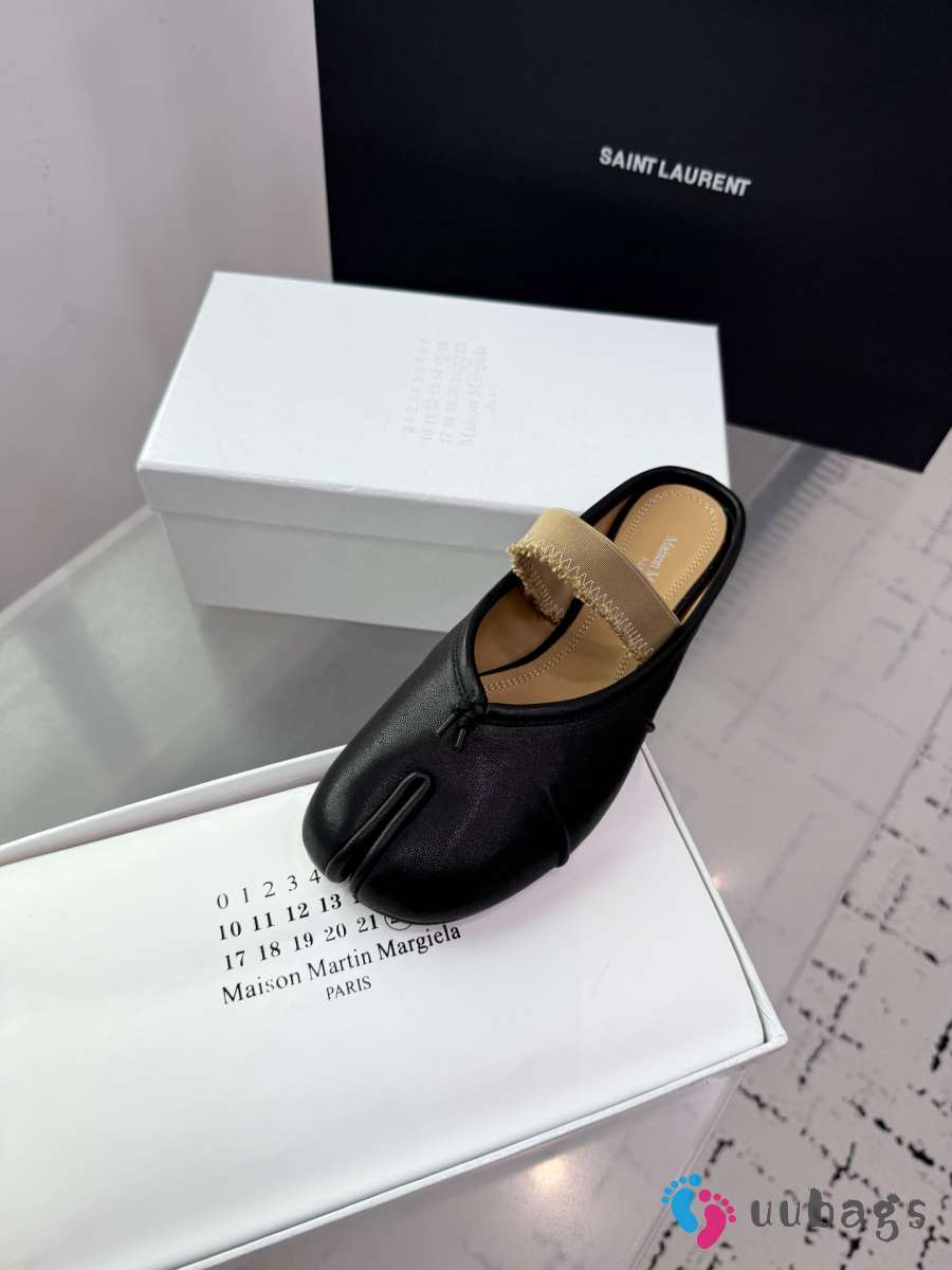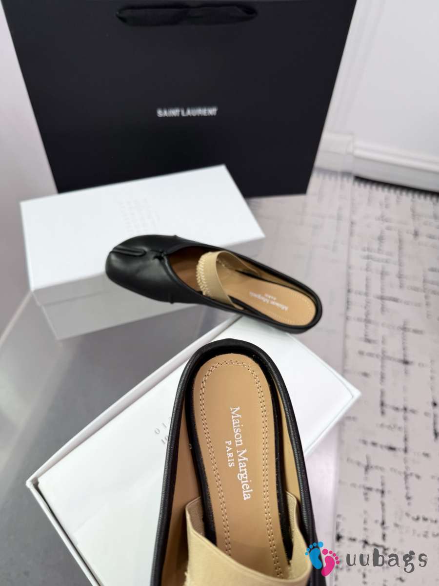 Uubags Maison Martin Margiela Black Leather Mules with Tan Strap