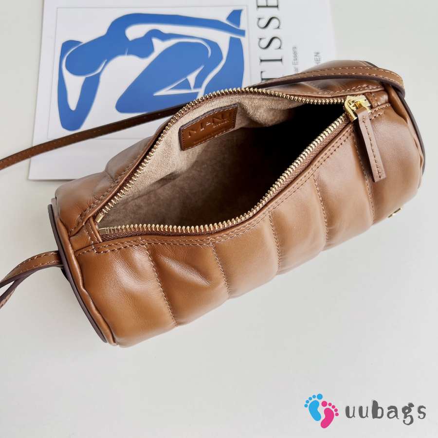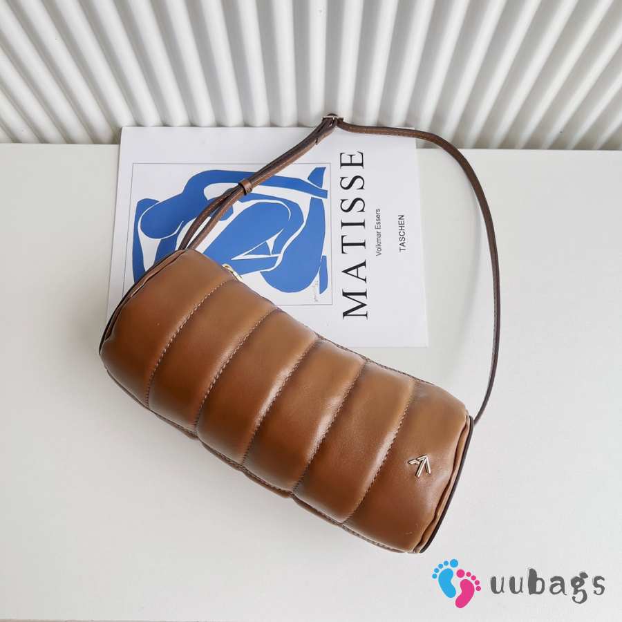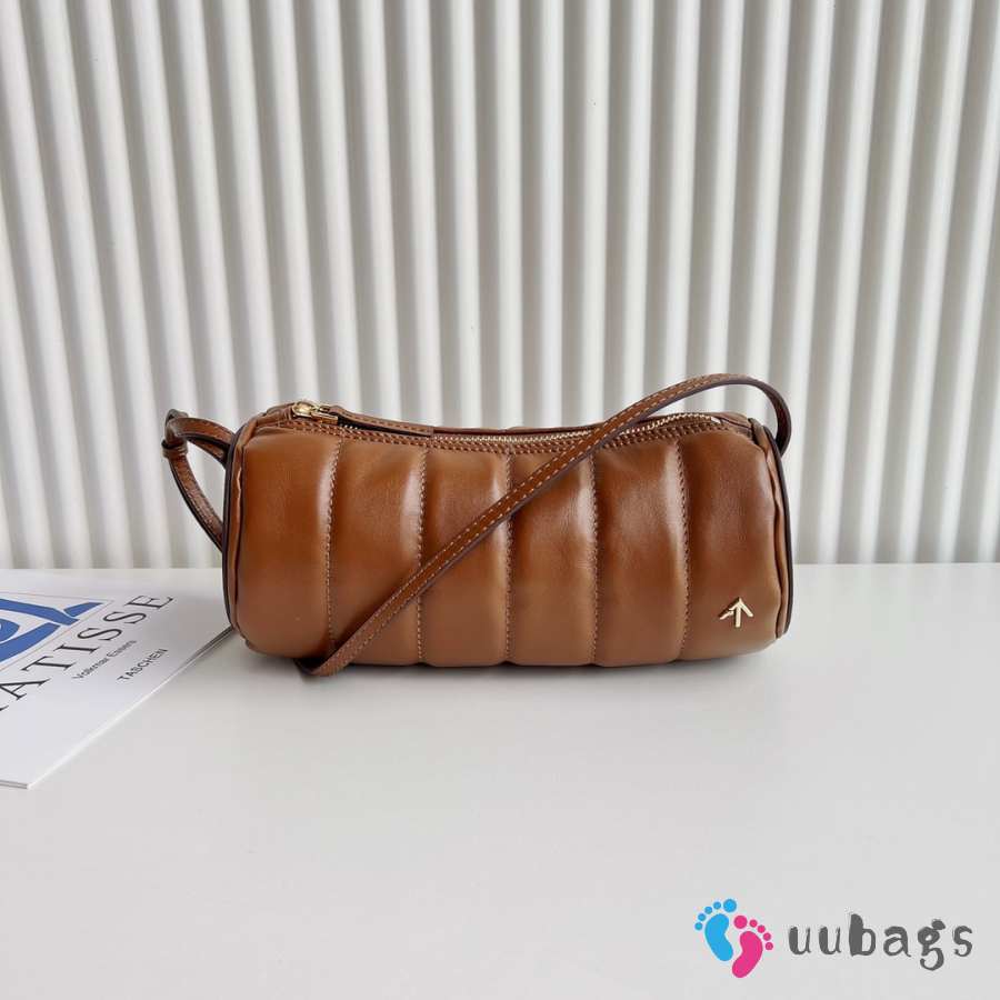 Uubags Manu Atelier Padded Cylinder Bag in Brown Leather 25x11x11cm