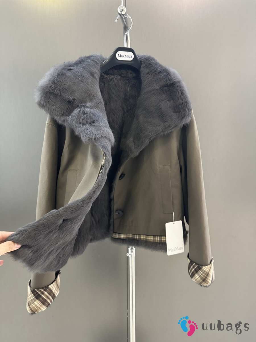 Uubags MaxMara Short Faux Fur Jacket in Charcoal Grey