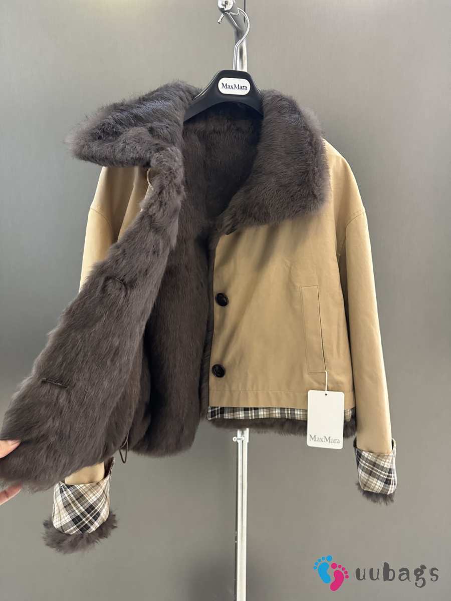 Uubags MaxMara Short Faux Fur Jacket in Medium Gray