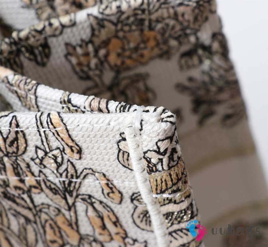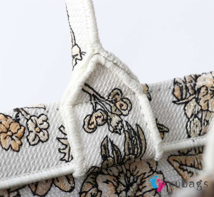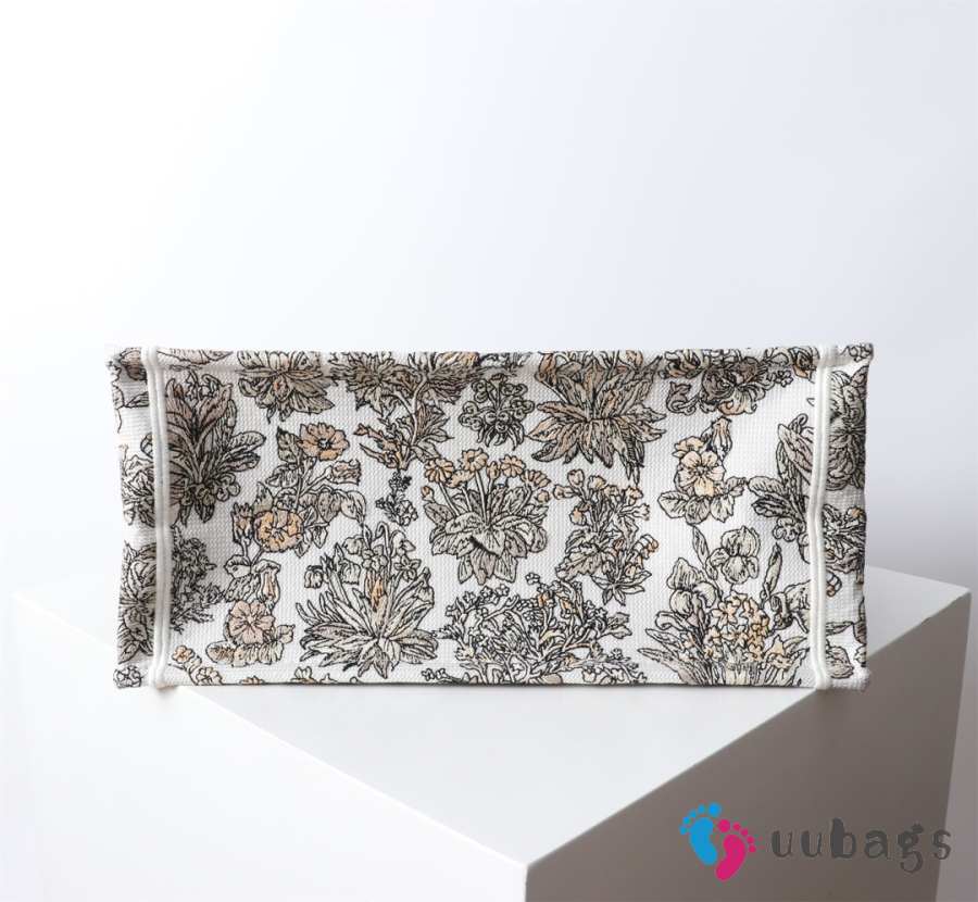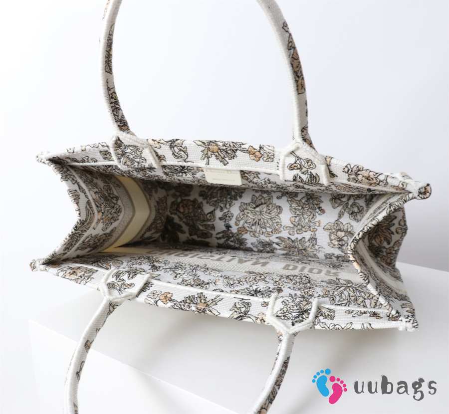 Uubags Medium Dior Book Tote Bag in Beige Multicolor Toile de Jouy Flower Embroidery 36.5x28x14cm