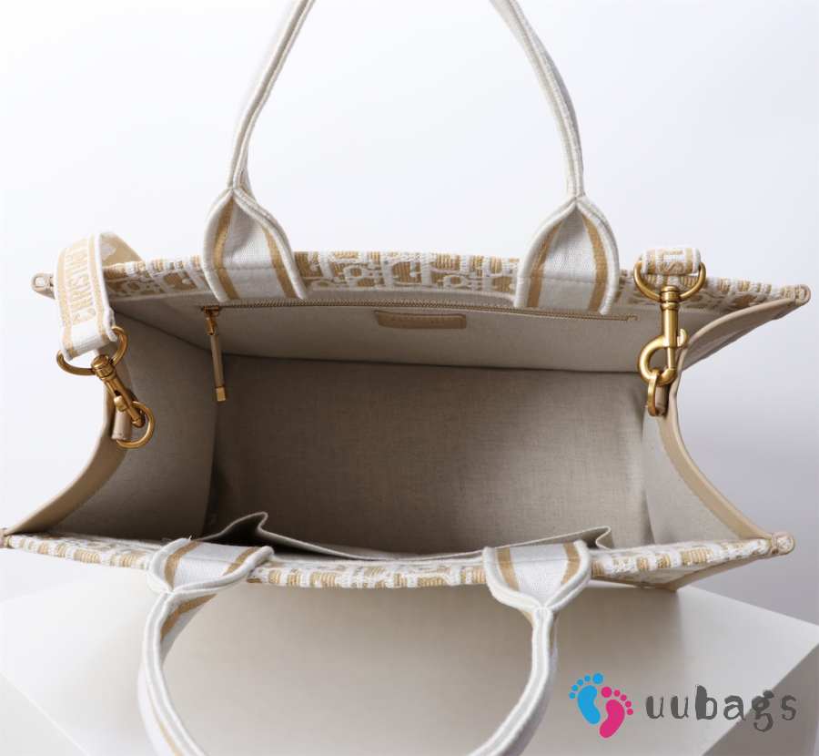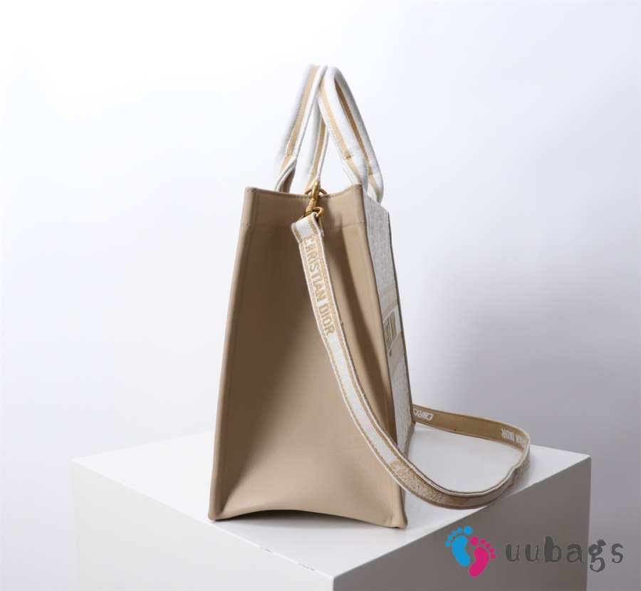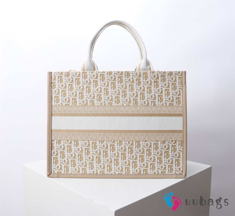 Uubags Medium Dior Book Tote Beige Dior Oblique Embroidery and Calfskin 36x27.5x16.5cm