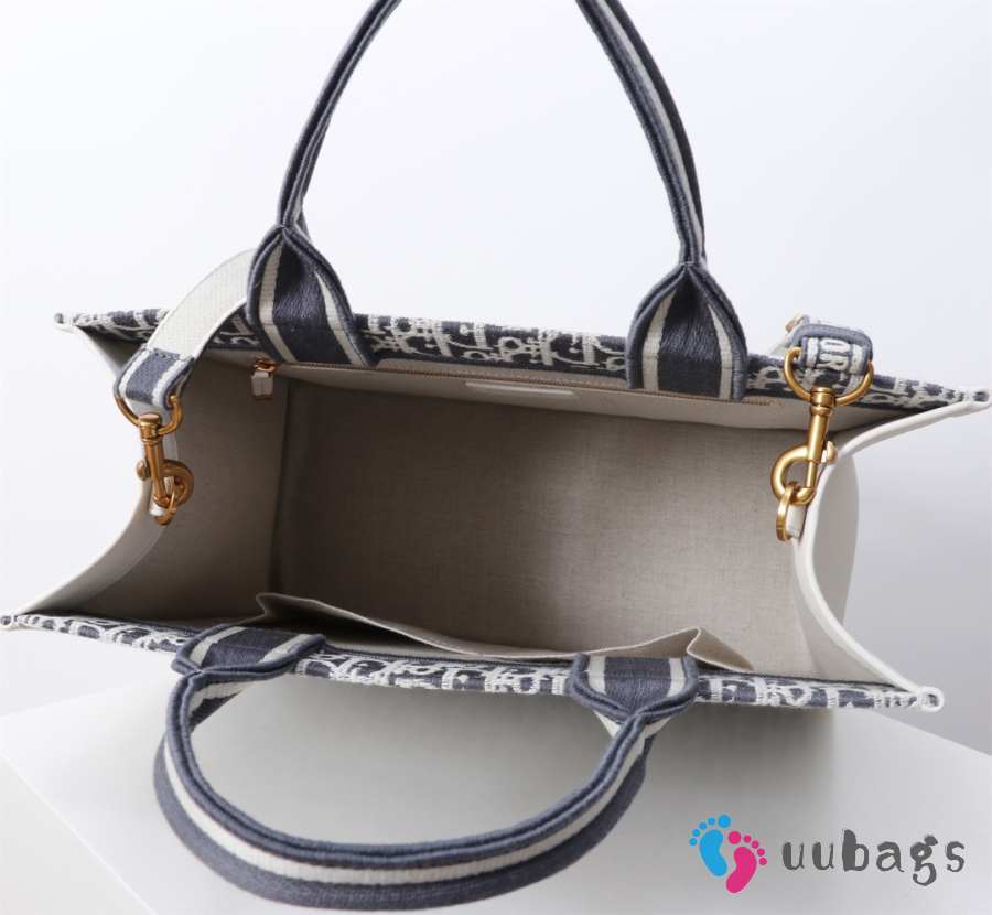 Uubags Medium Dior Book Tote Black Dior Oblique Embroidery and Calfskin 36x27.5x16.5cm