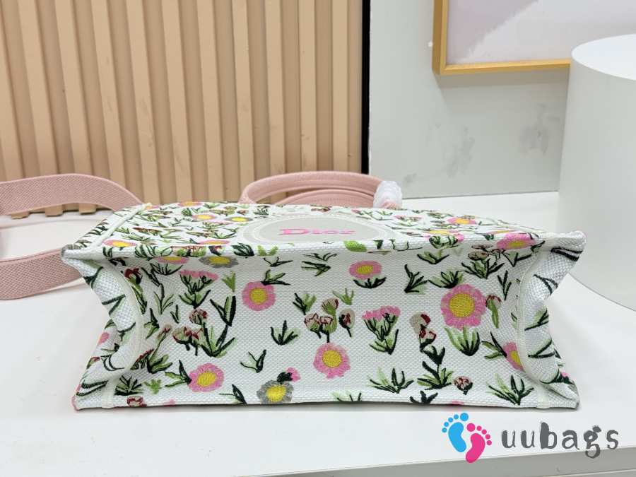 Uubags Medium Dior Book Tote with Strap White Multicolor Daisy Garden Embroidery with Dior Médaillon 36x27.5x16.5cm