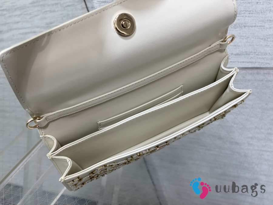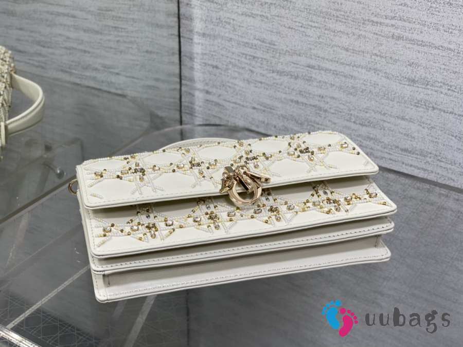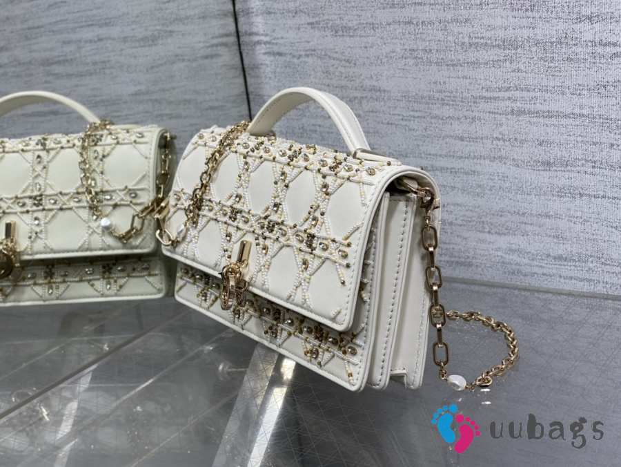 Uubags Miss Dior Micro Hand-Beaded Embroidered Top Handle Bag In White/Gold 24x7.5x14cm