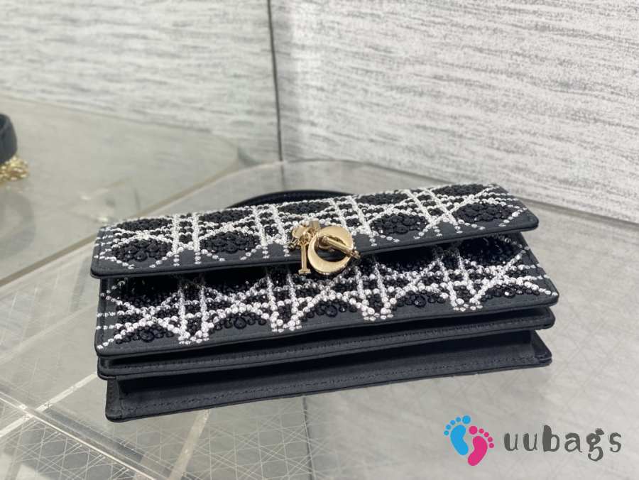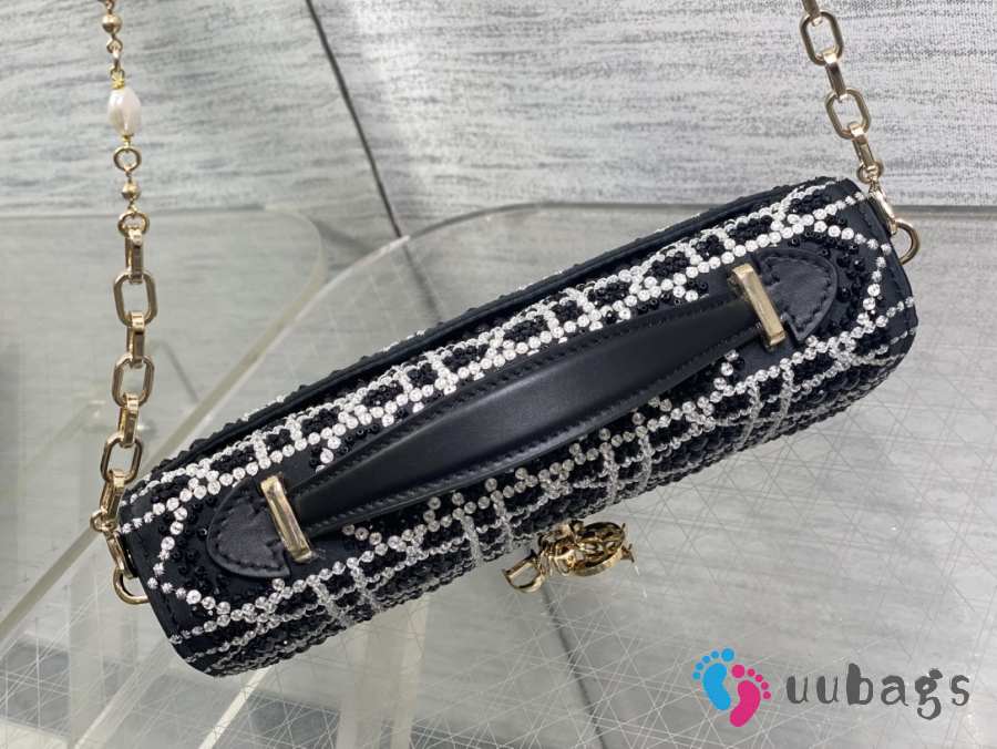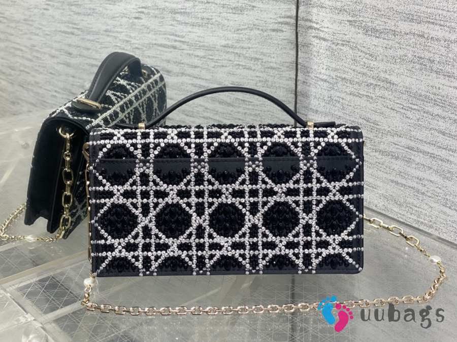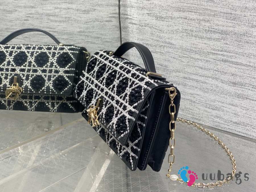 Uubags Miss Dior Micro Hand-Beaded Polka Dot Top Handle Bag In Black/White 21x11.5x4cm