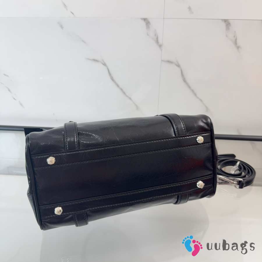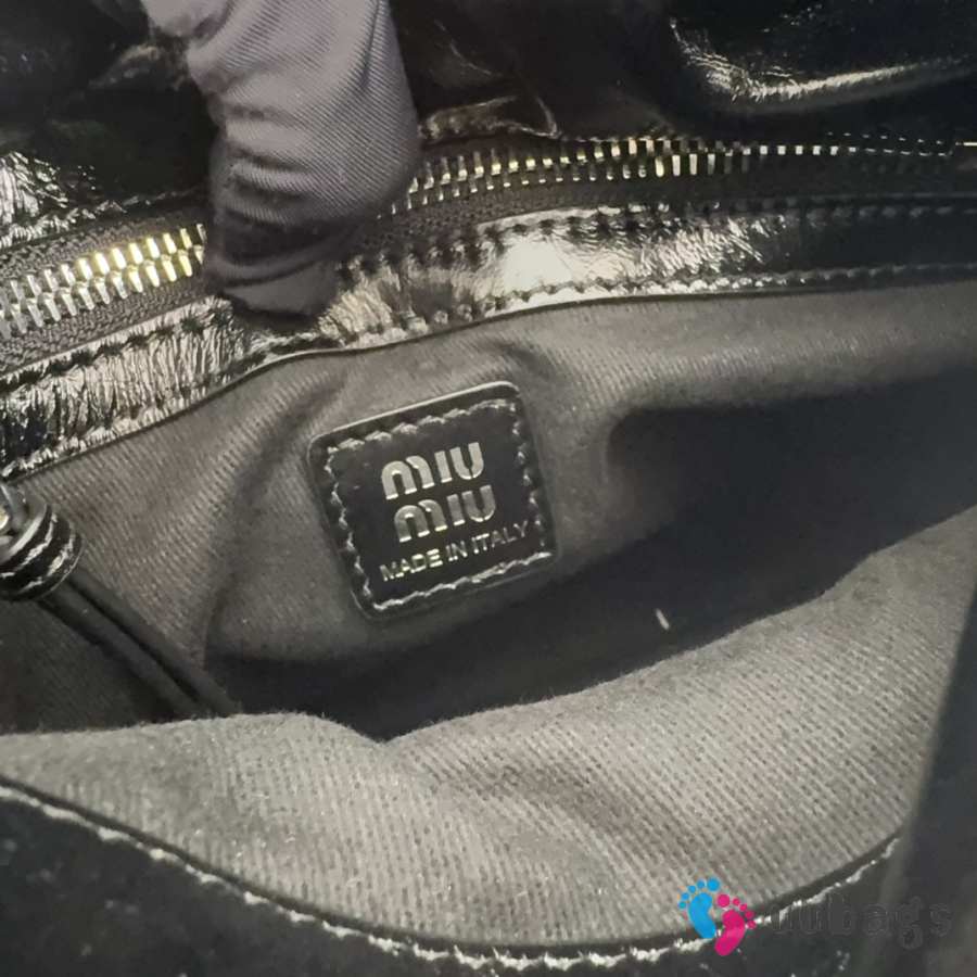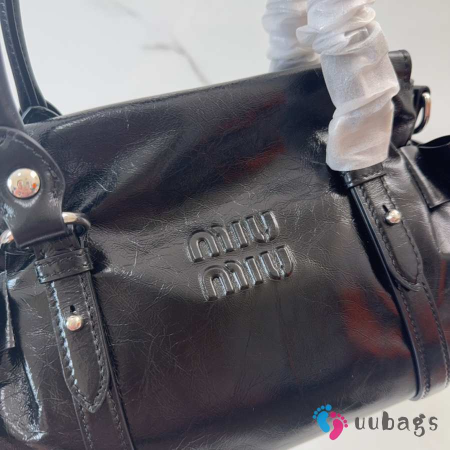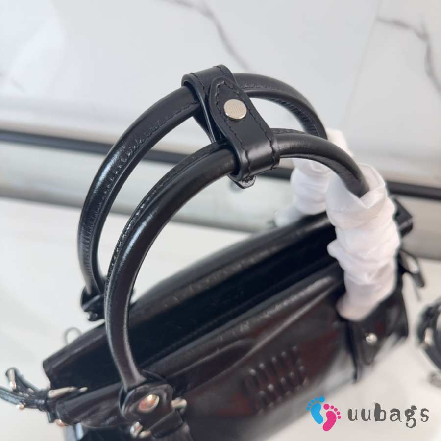 Uubags Miu Miu 5BA327 shiny leather top-handle bag in black 27x16x13cm