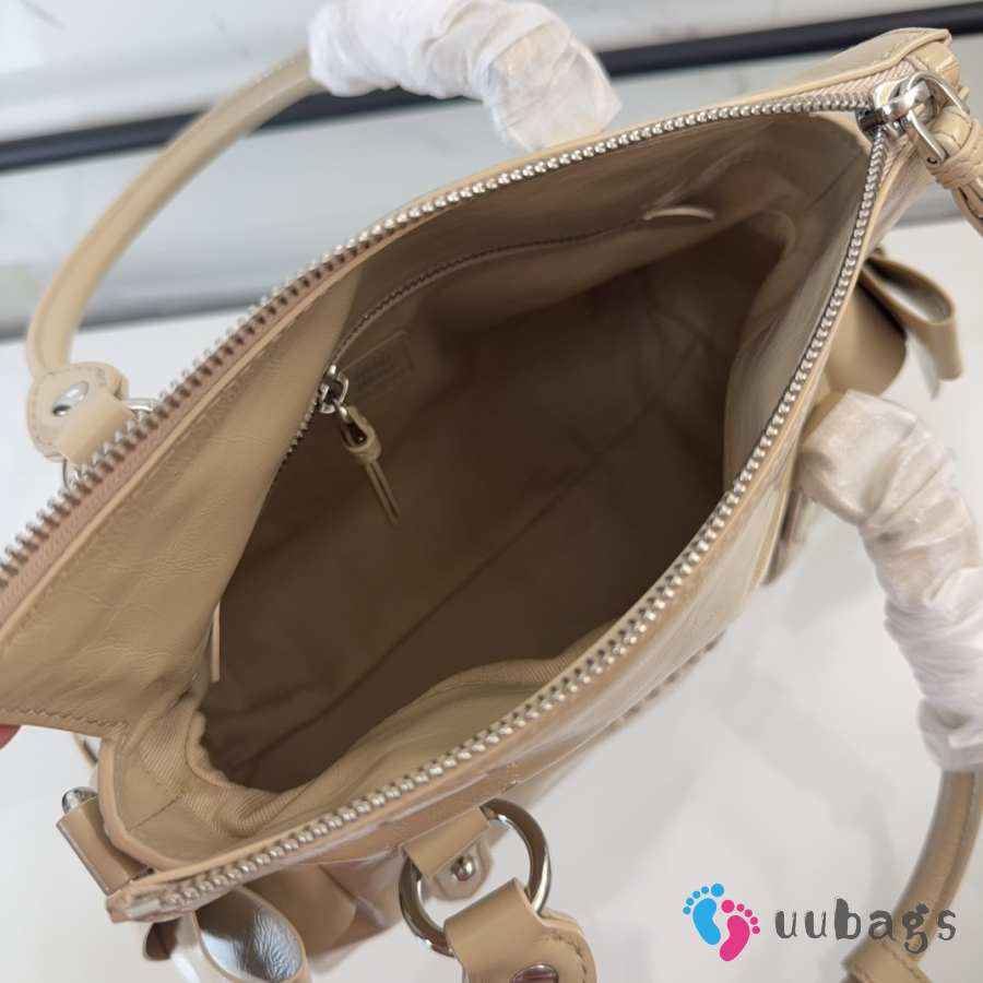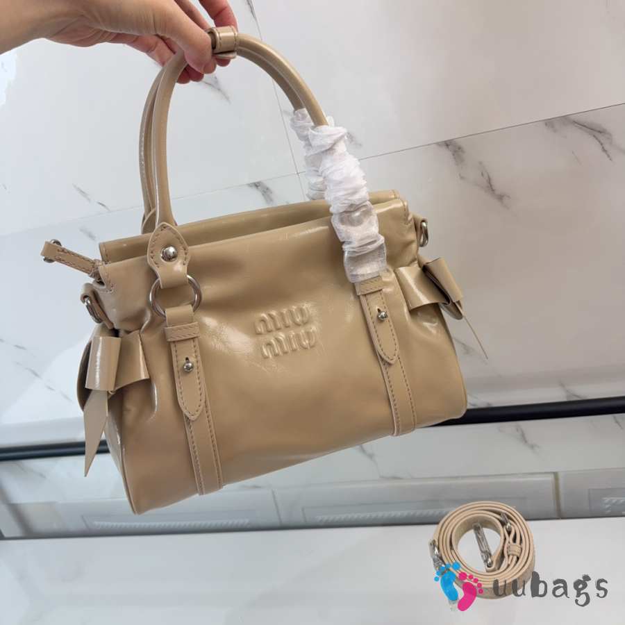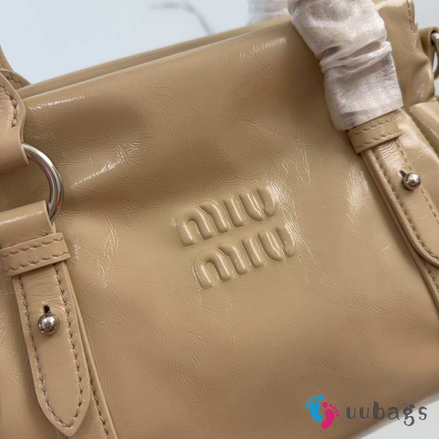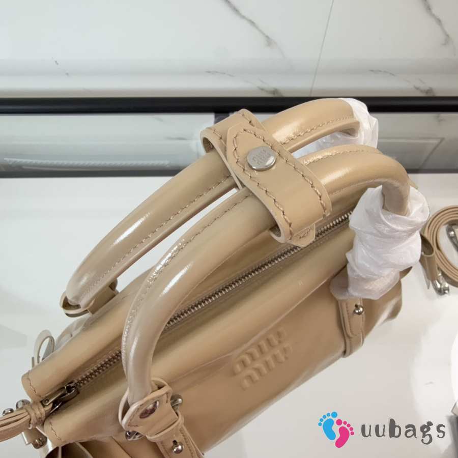Uubags Miu Miu 5BA327 shiny leather top-handle bag in light beige 27x16x13cm