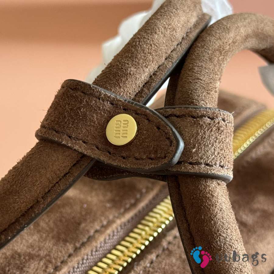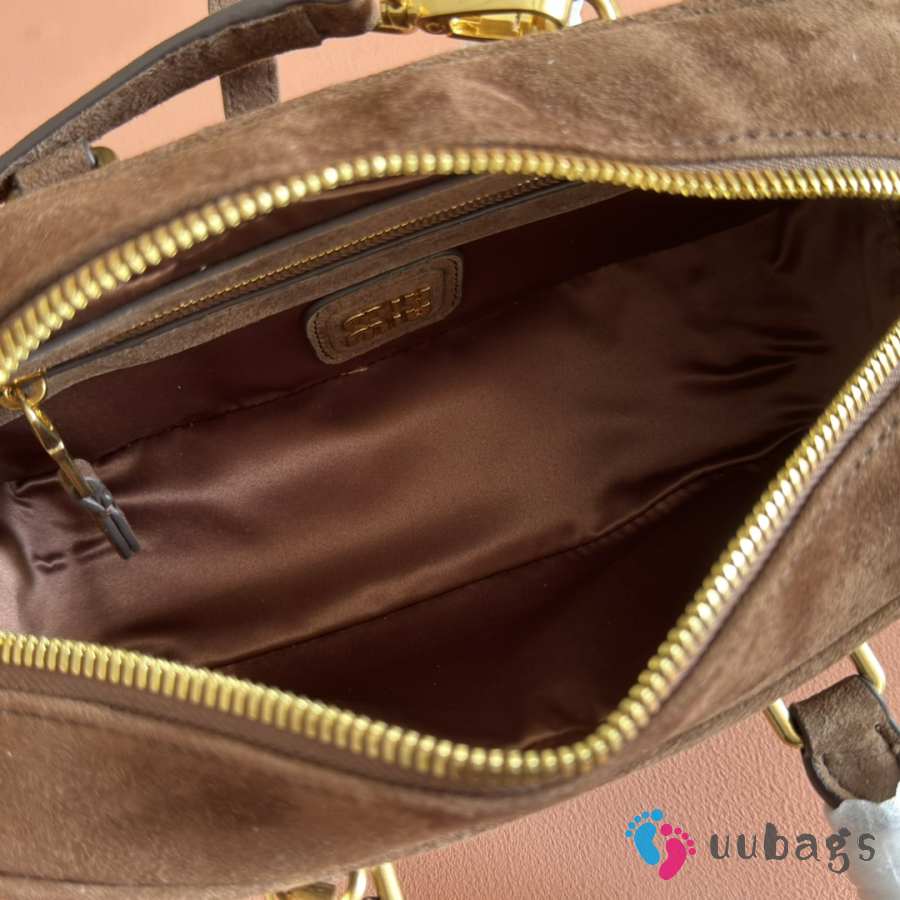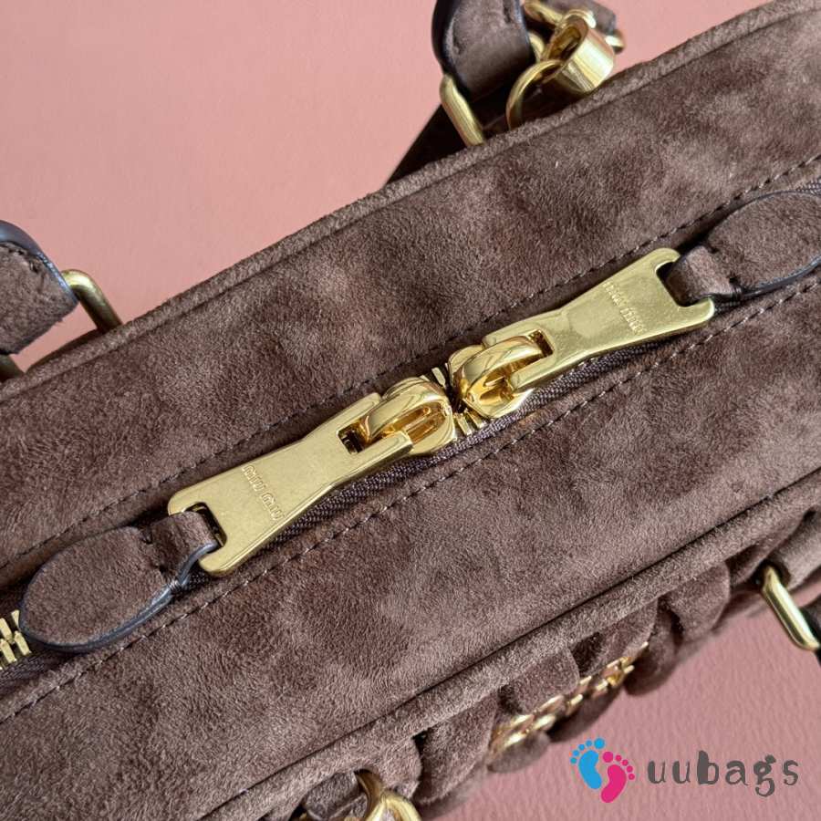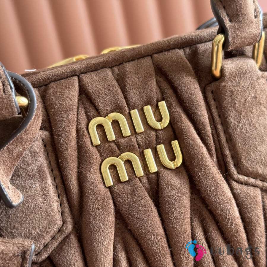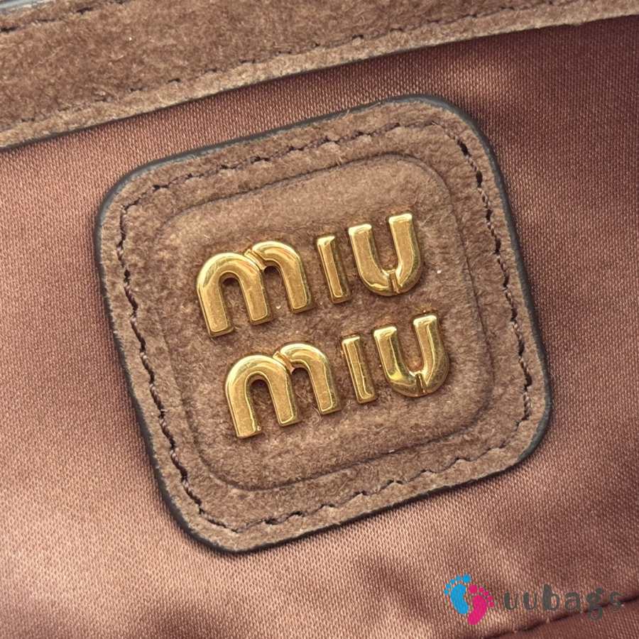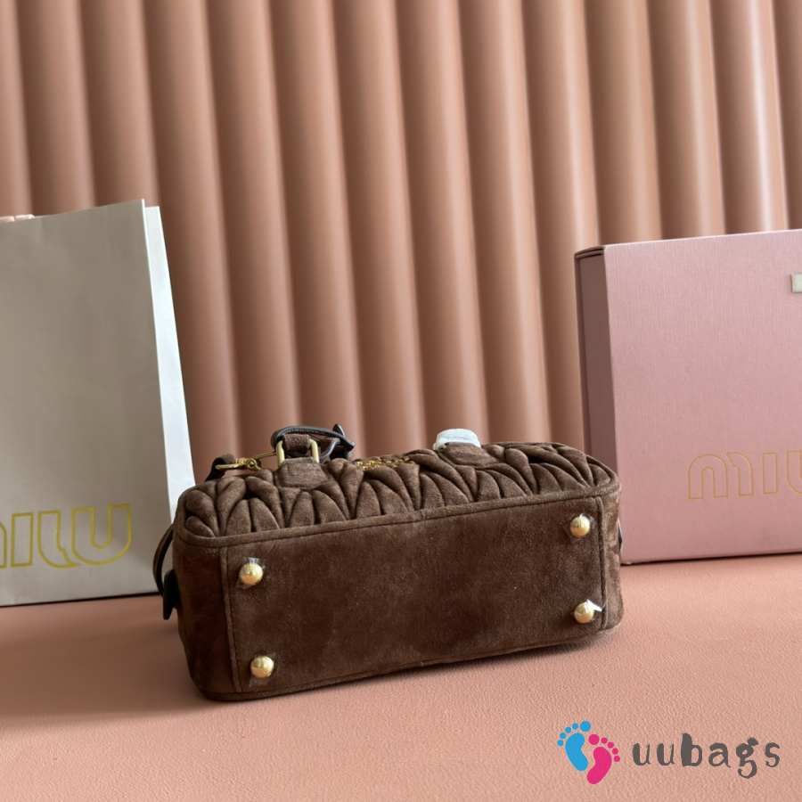 Uubags Miu Miu Arcadie matelassé suede bag in dark brown 22x10.5x7.5cm