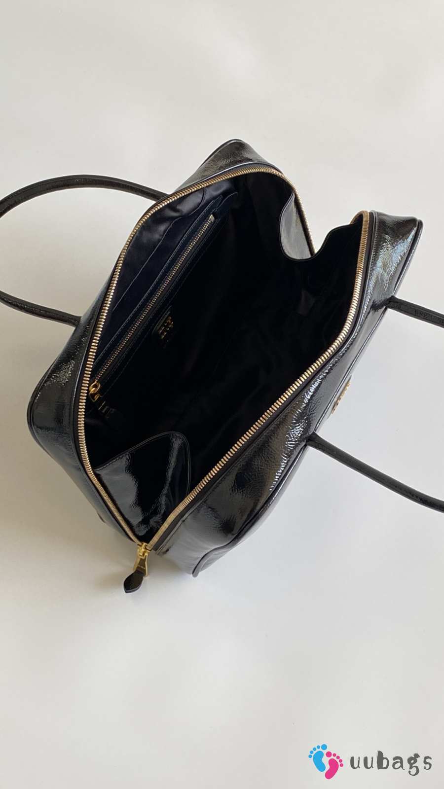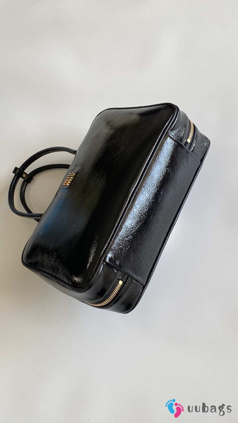 Uubags Miu Miu large Beau bag in black patent leather 35x22x12cm