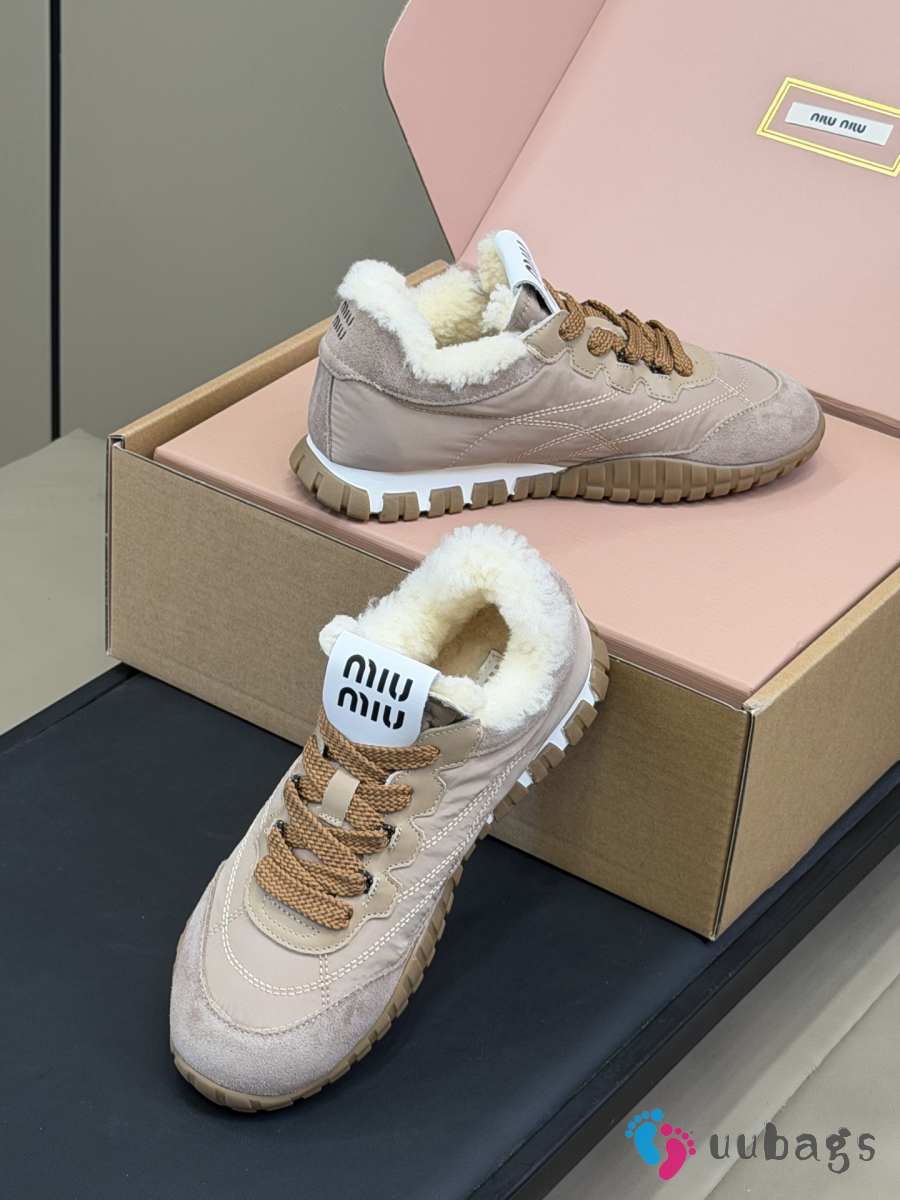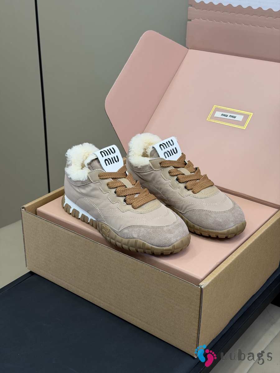 Uubags Miu Miu Leather and Shearling Sneakers Beige