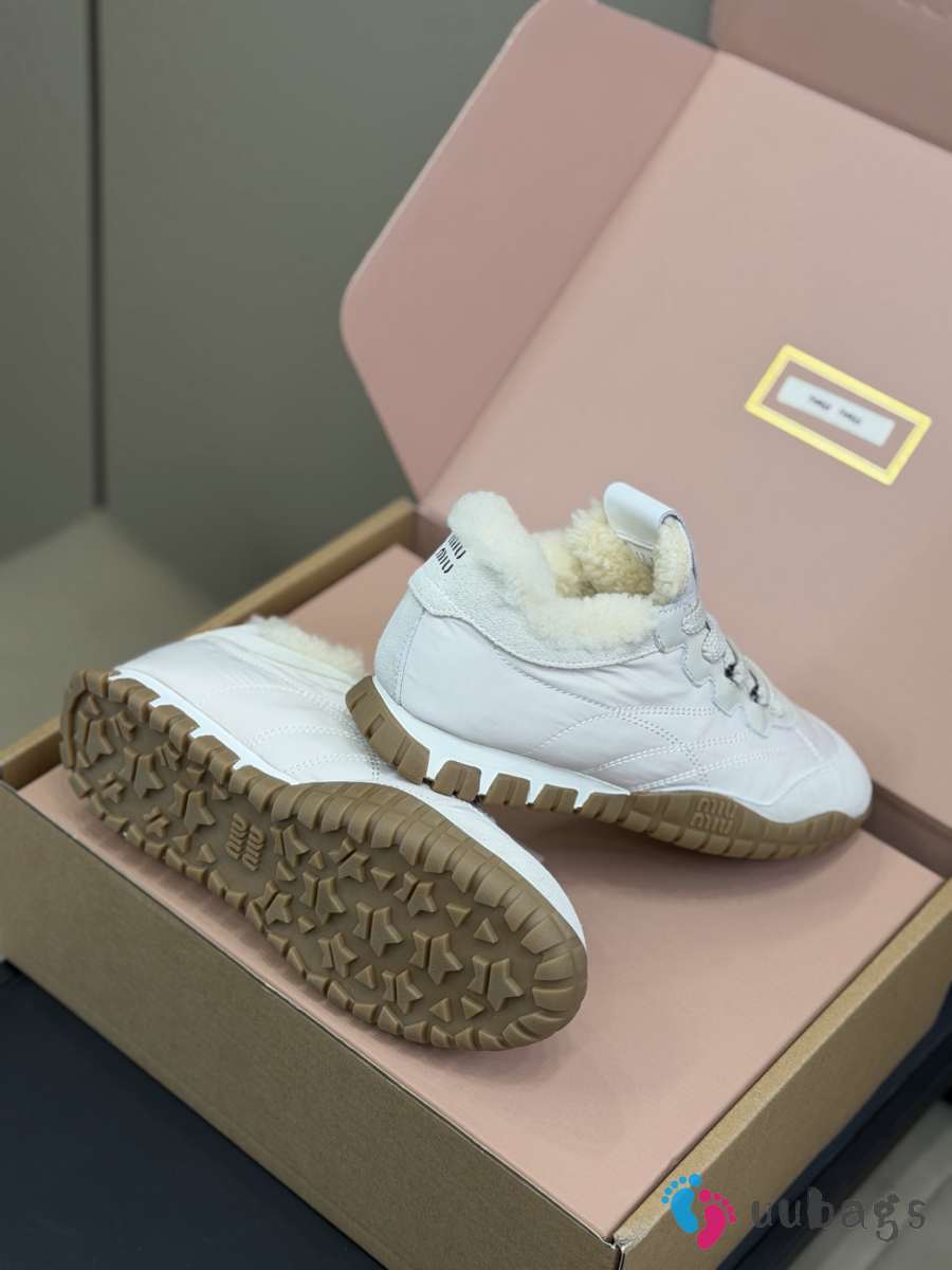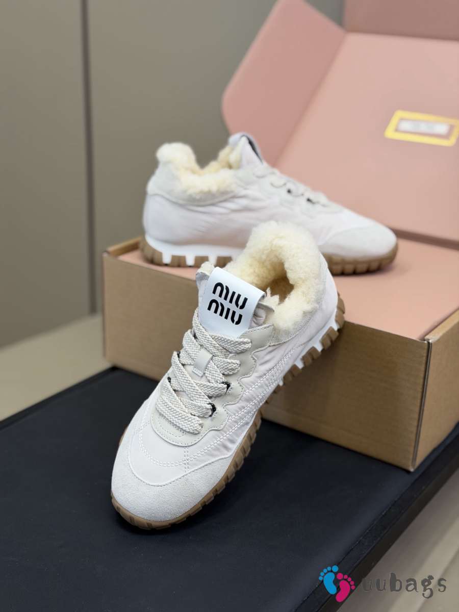 Uubags Miu Miu Leather and Shearling Sneakers White