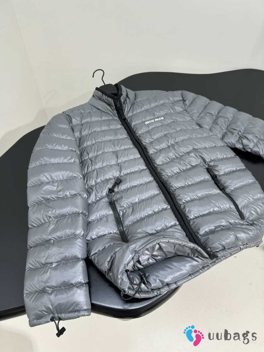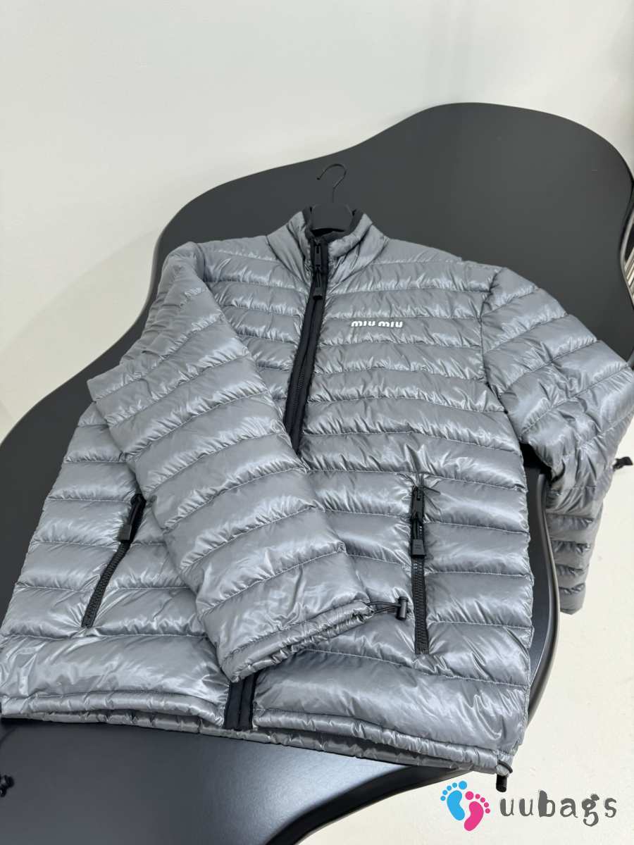 Uubags Miu Miu lightweight pongé down jacket in steel gray