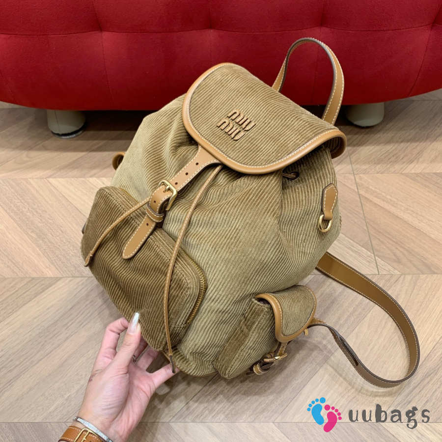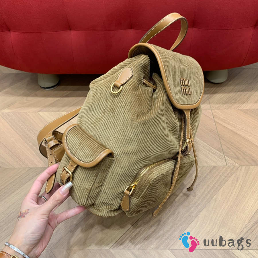 Uubags Miu Miu medium corduroy backpack in cinnamon 18x22x11.5cm