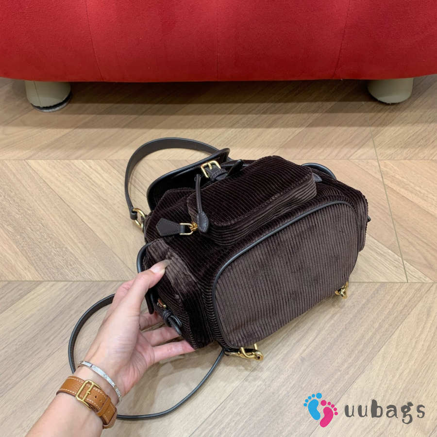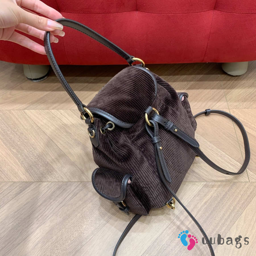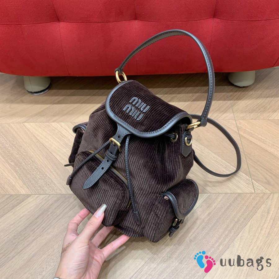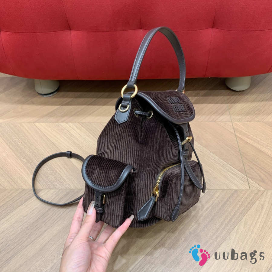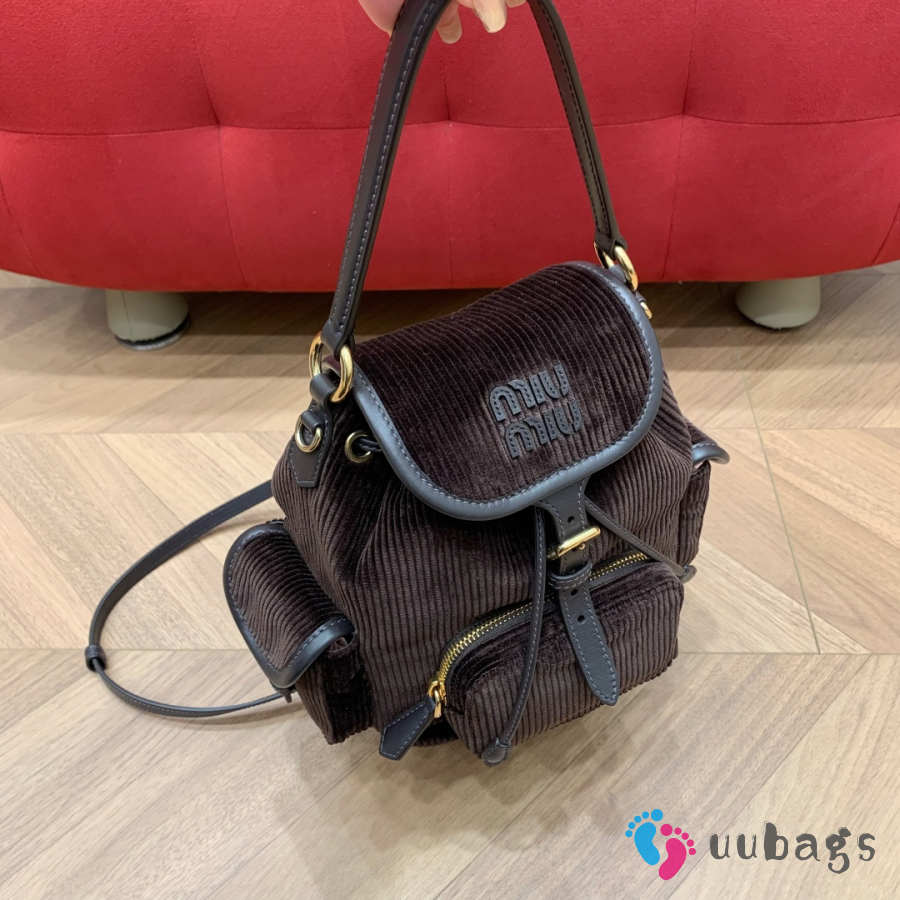 Uubags Miu Miu medium corduroy backpack in ebony 18x22x11.5cm