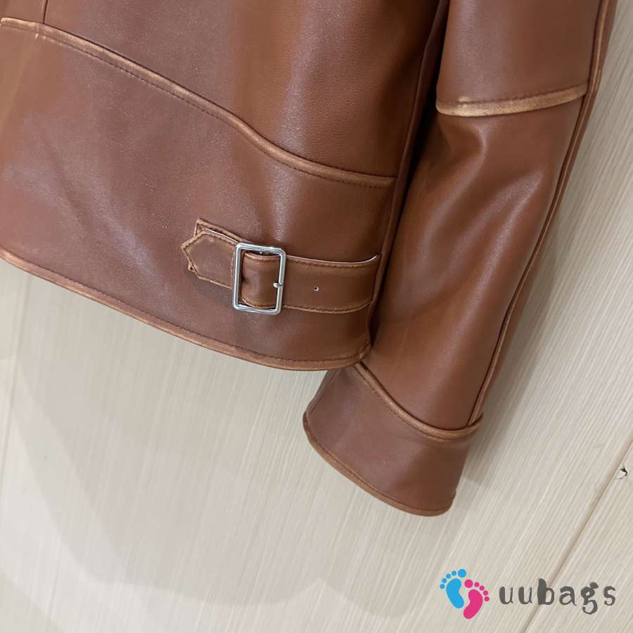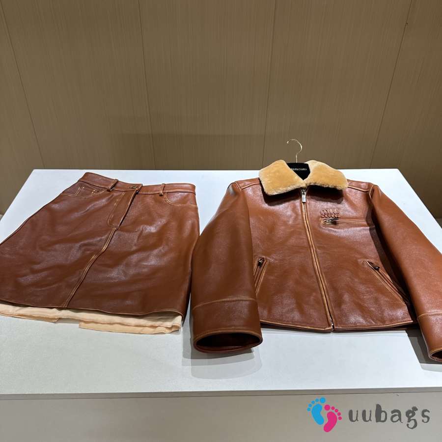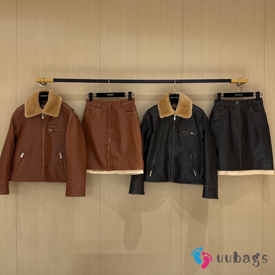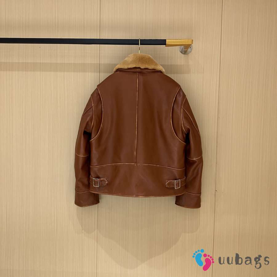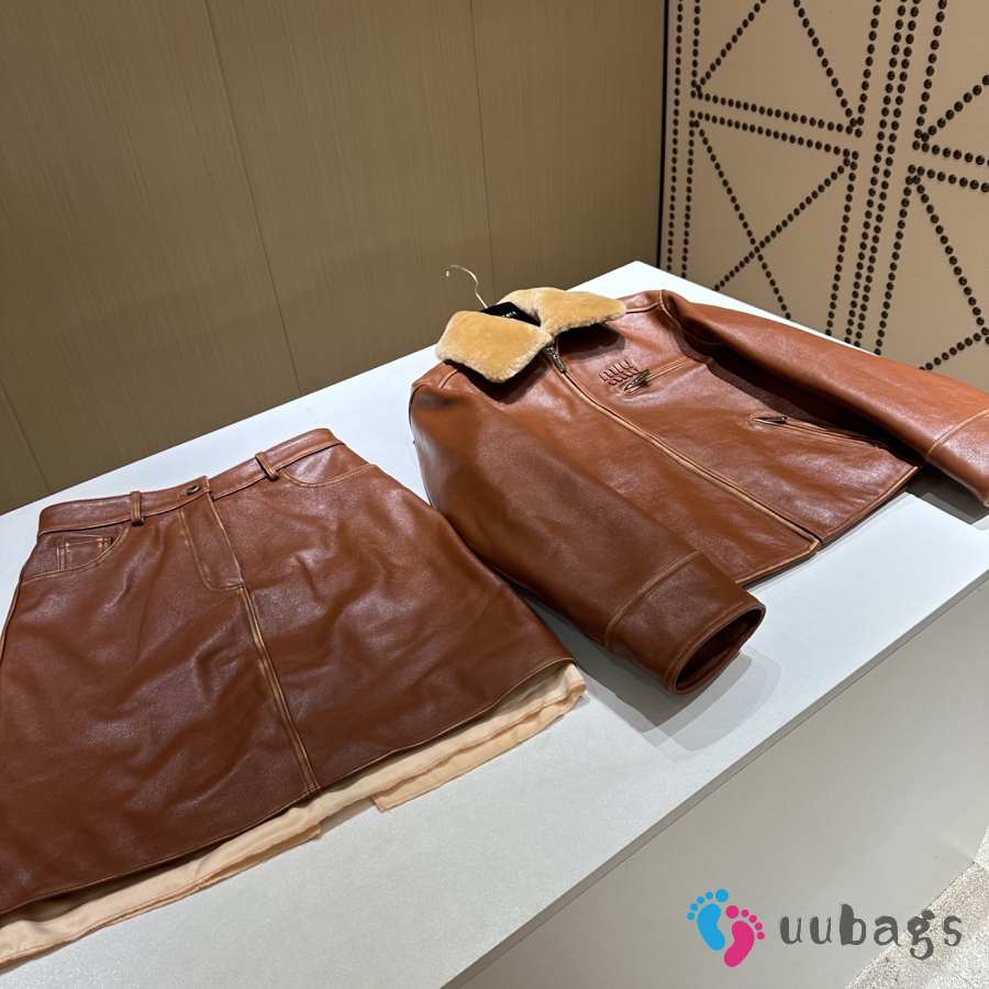Uubags Miu Miu Shearling-Trimmed Leather Jacket In Brown