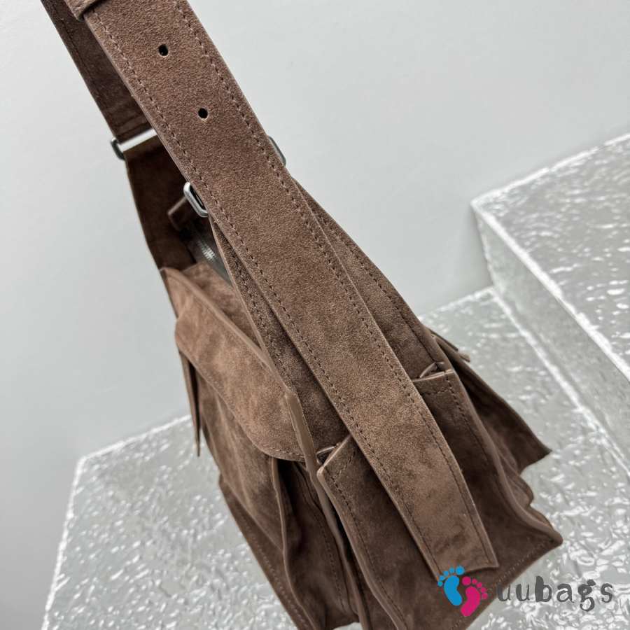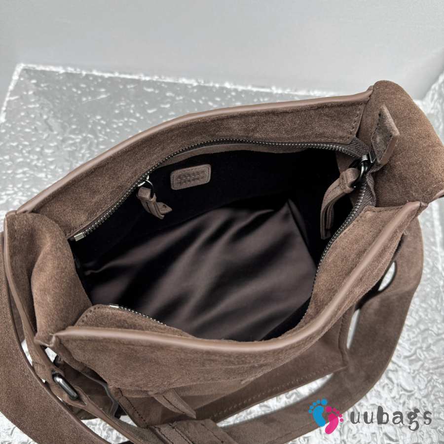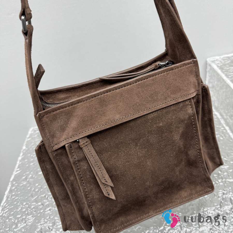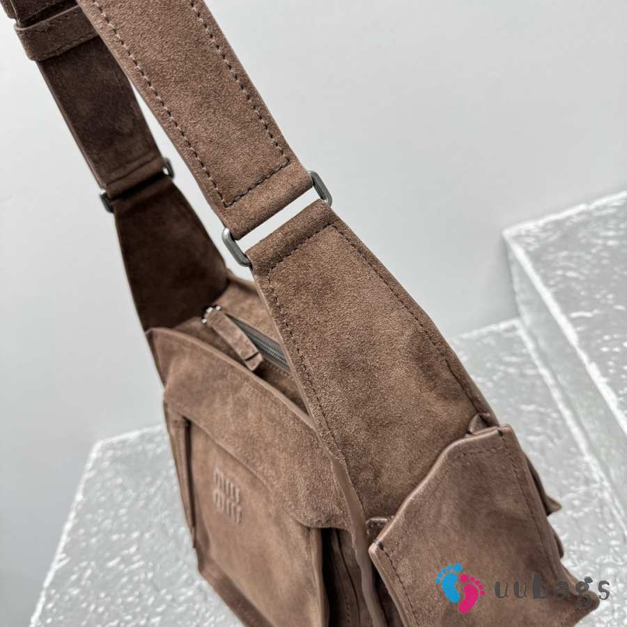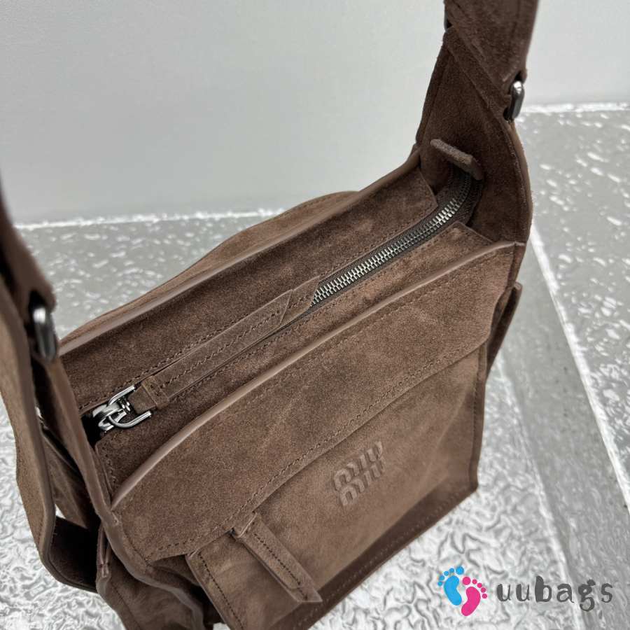 Uubags Miu Miu Suede Utility Shoulder Bag In Dark Brown 26x20x10cm