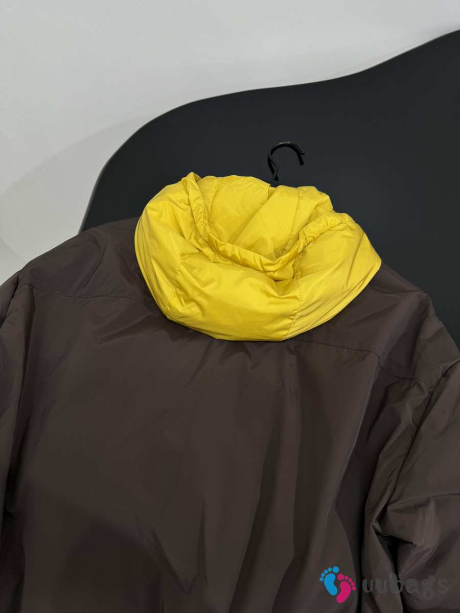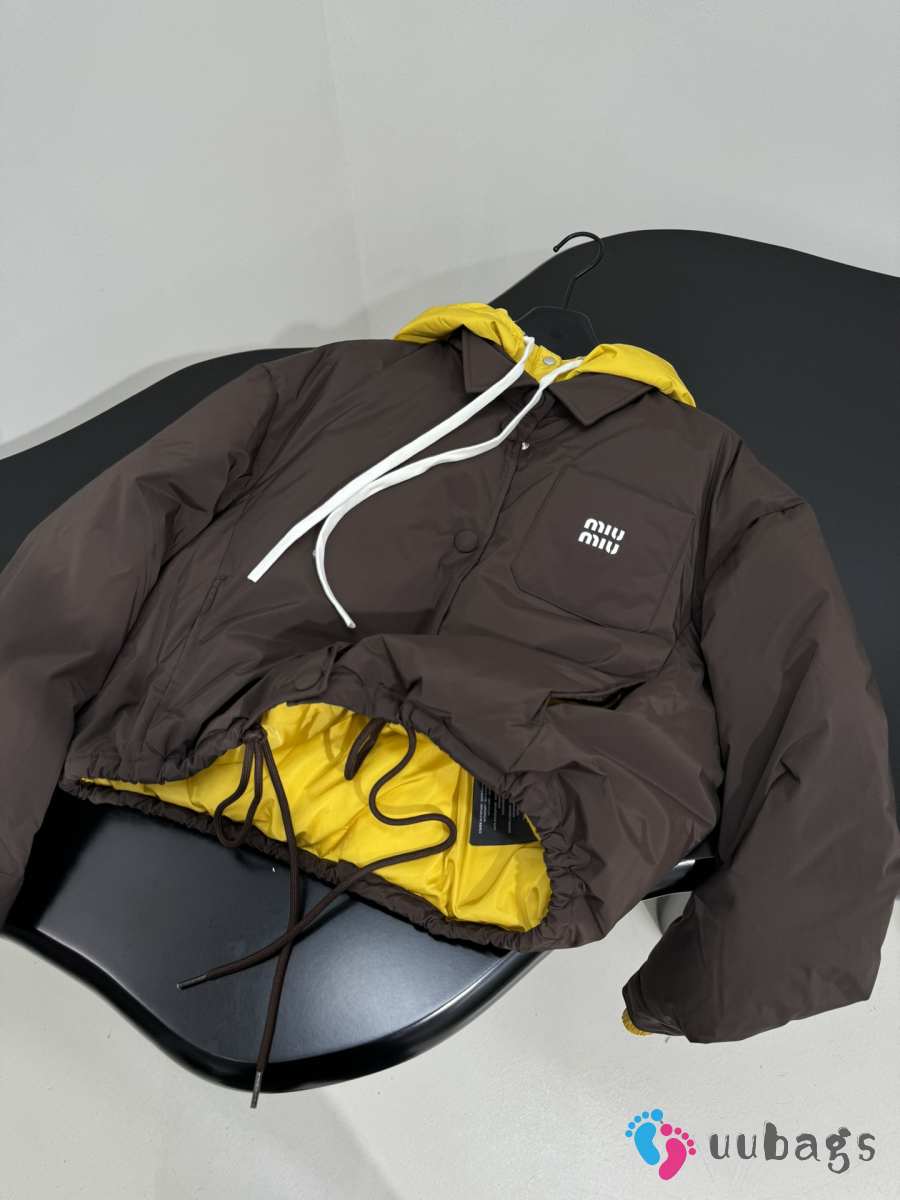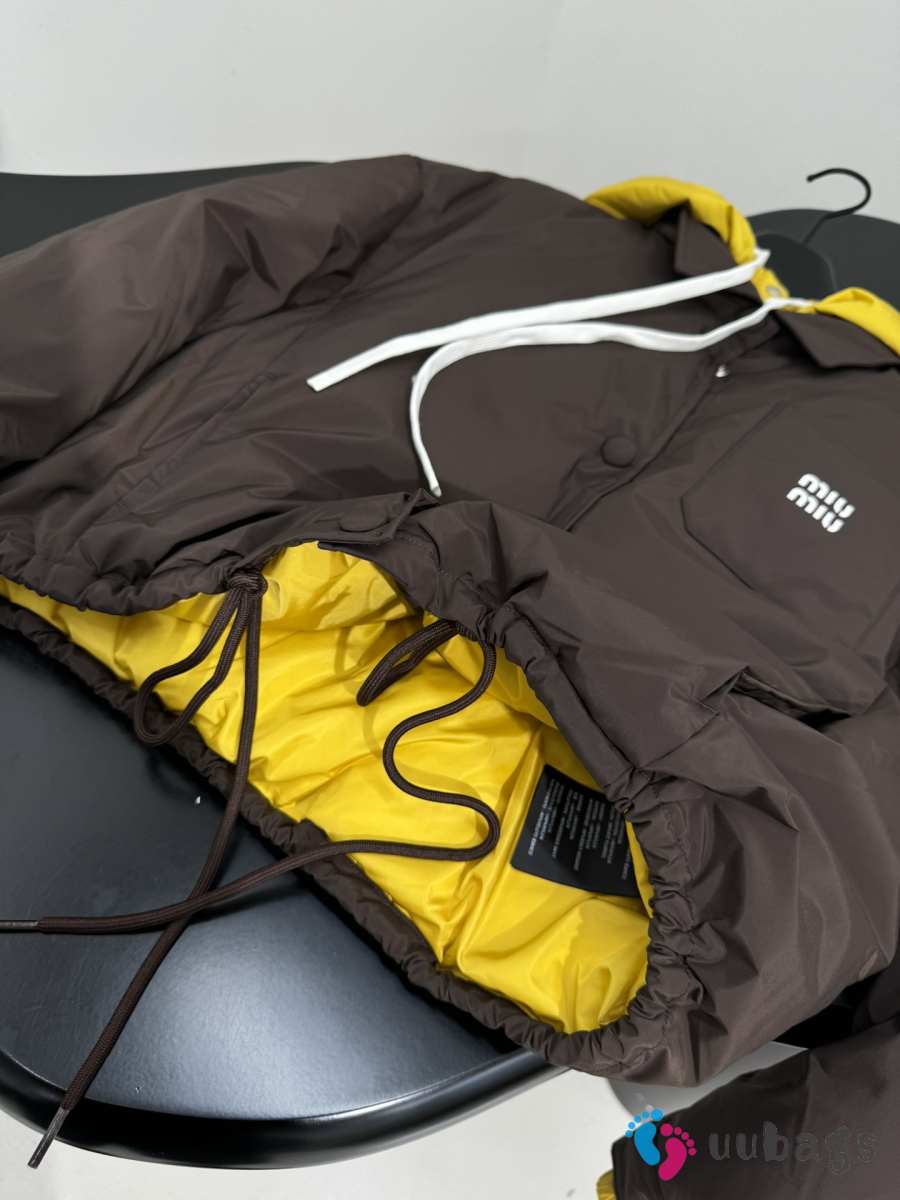 Uubags Miu Miu Technical pongé down hoodie jacket in coffee/mustard
